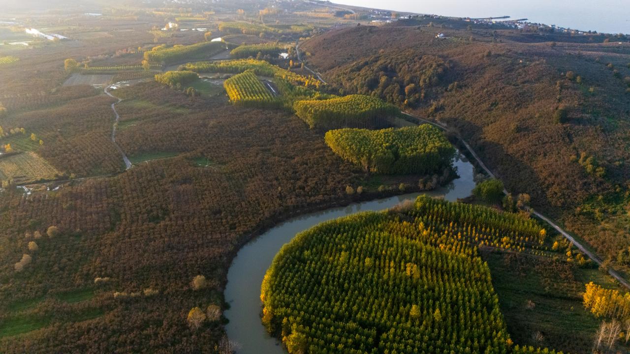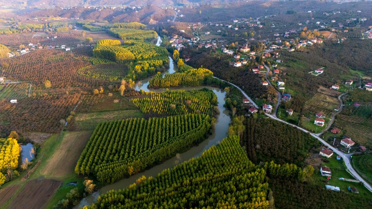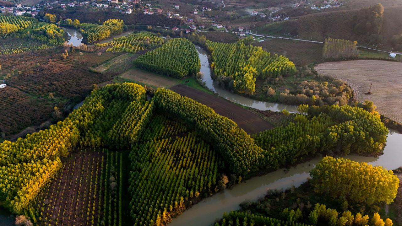 Sonbahar mevsiminin tüm renklerinin bir arada görülebildiği Melen Çayı Havzası`nda ağaçlar, yeşil, sarı, kahverengi ve kızılın tonlarıyla güzel manzara oluşturdu.