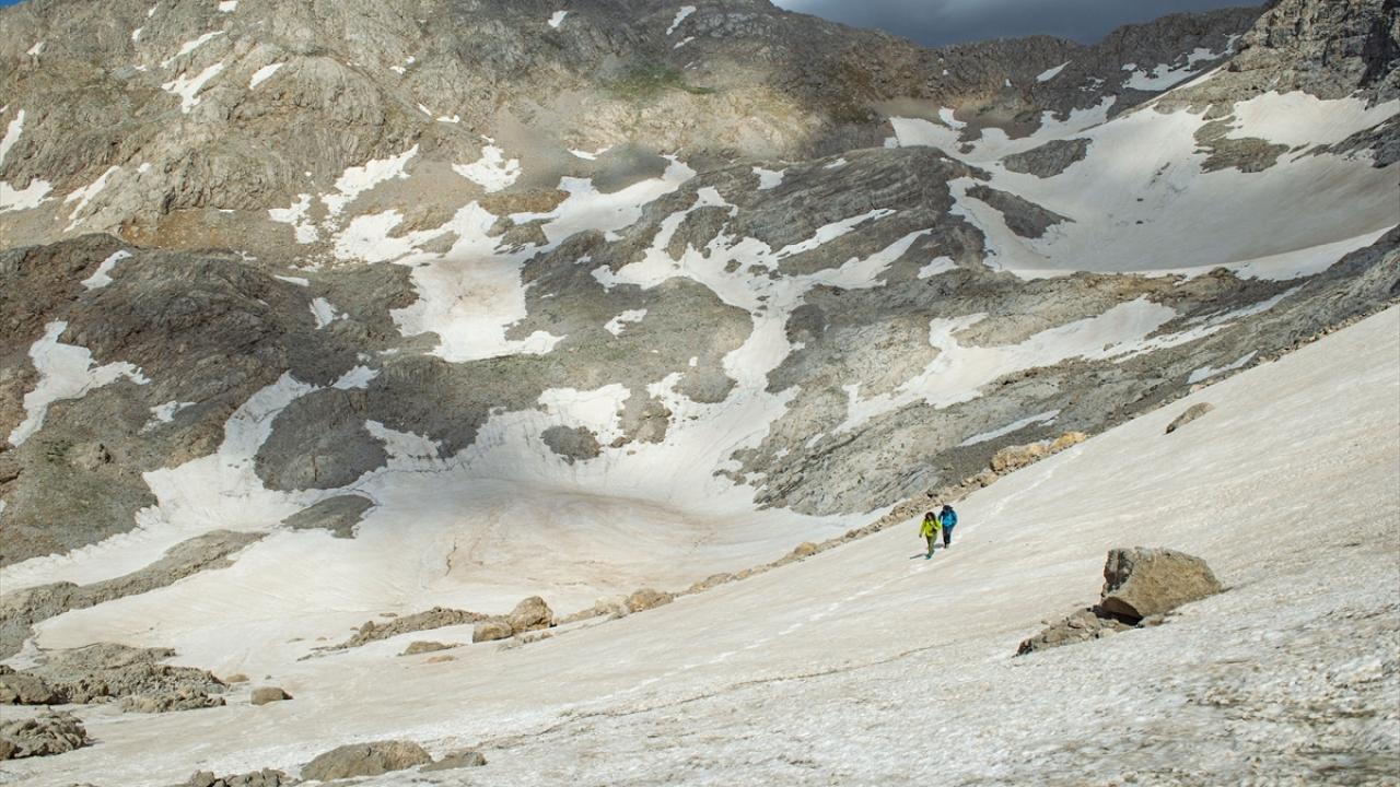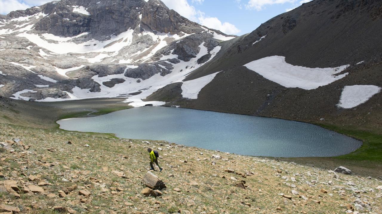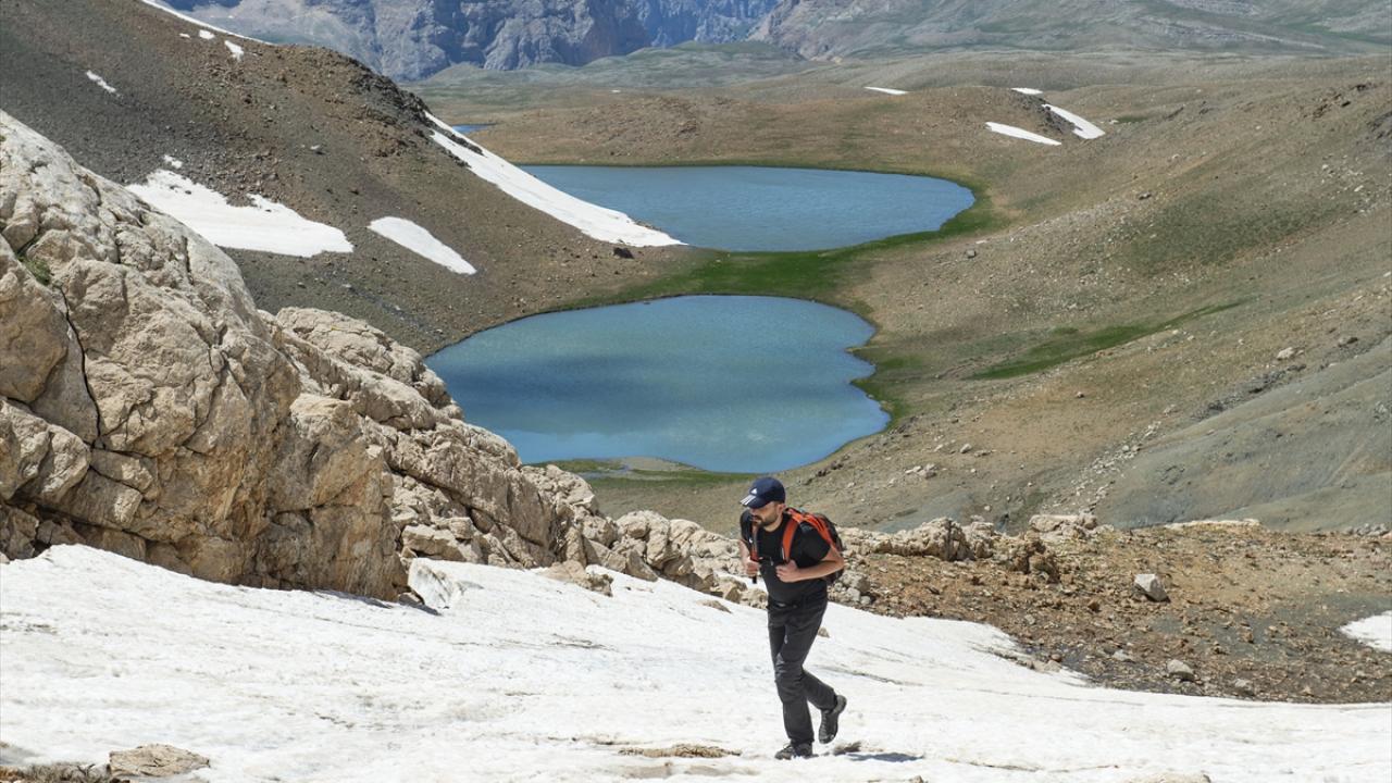 Köyden göllere doğru yürüyüşe başlayanlar, sarp dağların arasındaki patikada yaklaşık 3 saatlik zorlu yolculuk gerçekleştirdikten sonra 9 farklı noktadaki Katır Gölleri`ne varıyor.
