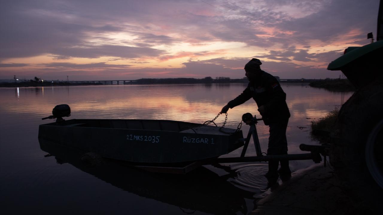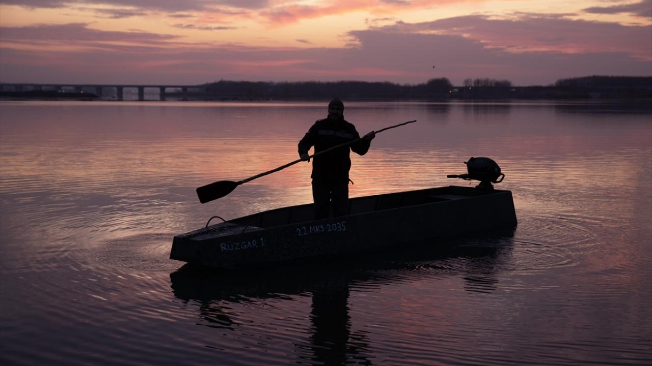 Meriç Nehri`nin sakin sularına yansıyan gün doğumunun renkleri ile güne başlayan balıkçılar, kış aylarının zorlu şartları altında kısmetlerini arıyor.