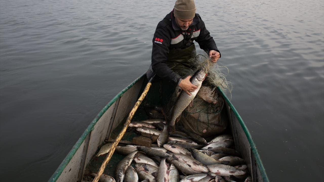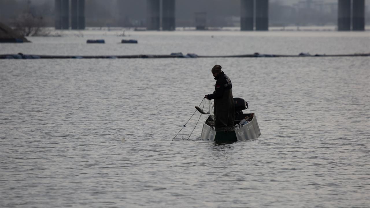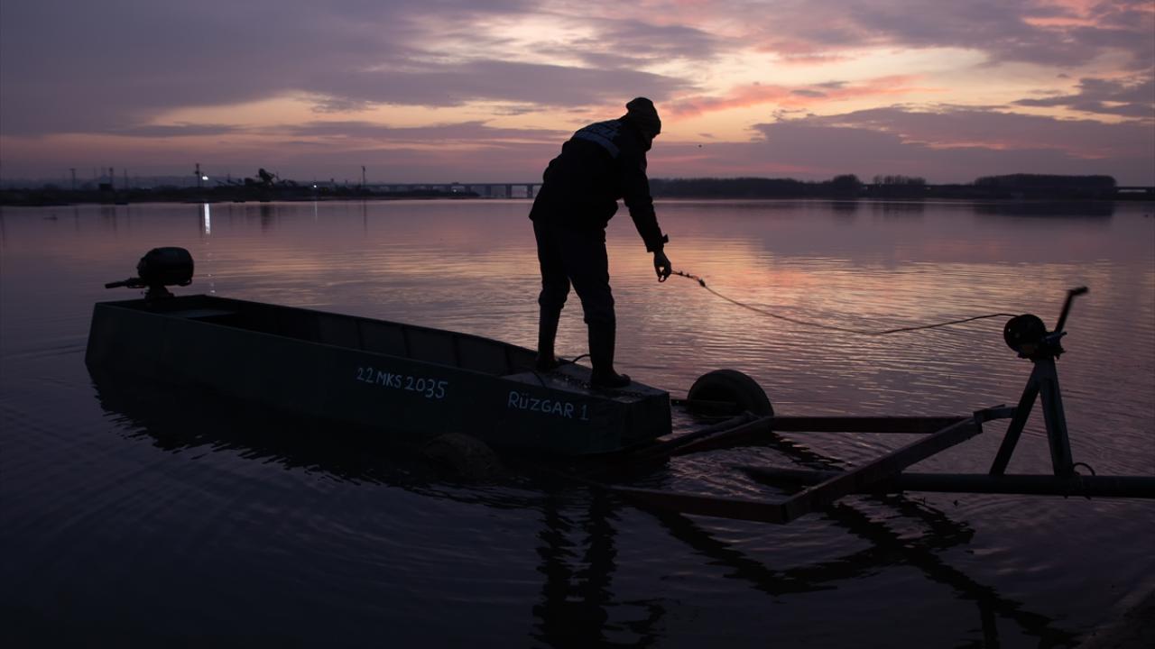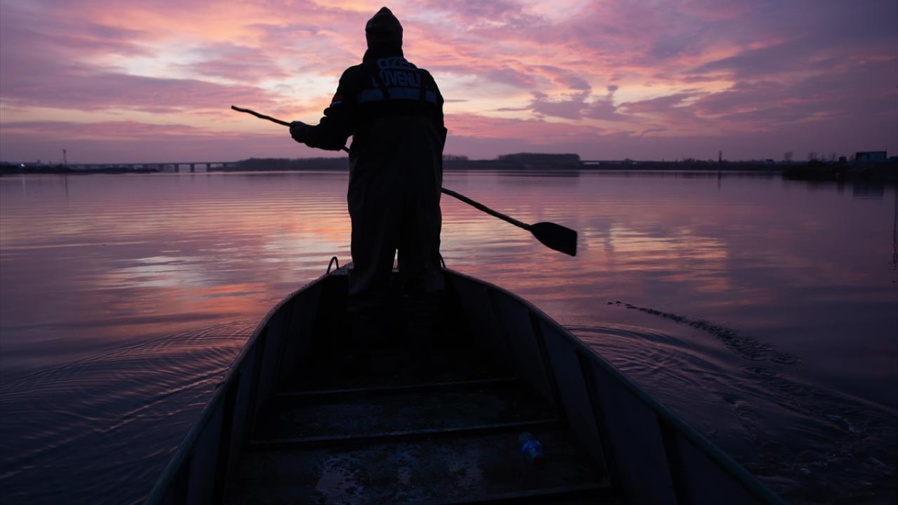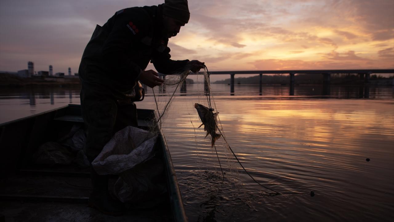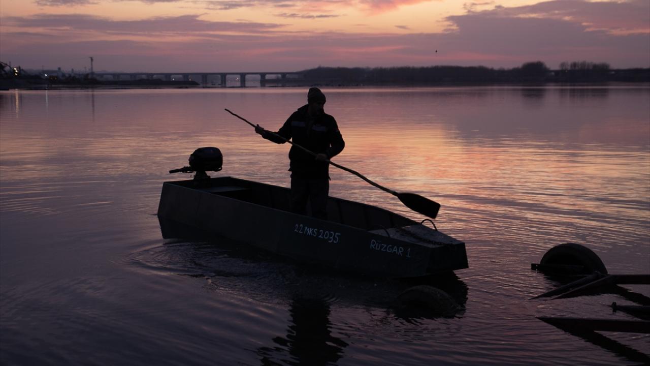 Edirne'de balıkçılar, Meriç ve Tunca nehirlerinde gece suya bıraktıkları ağlarını, sabahın erken saatlerinde toplamaya başlıyor.