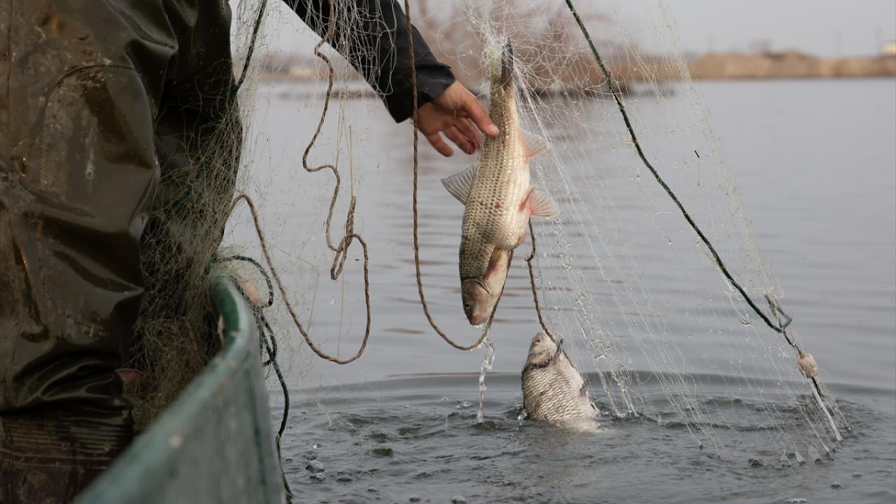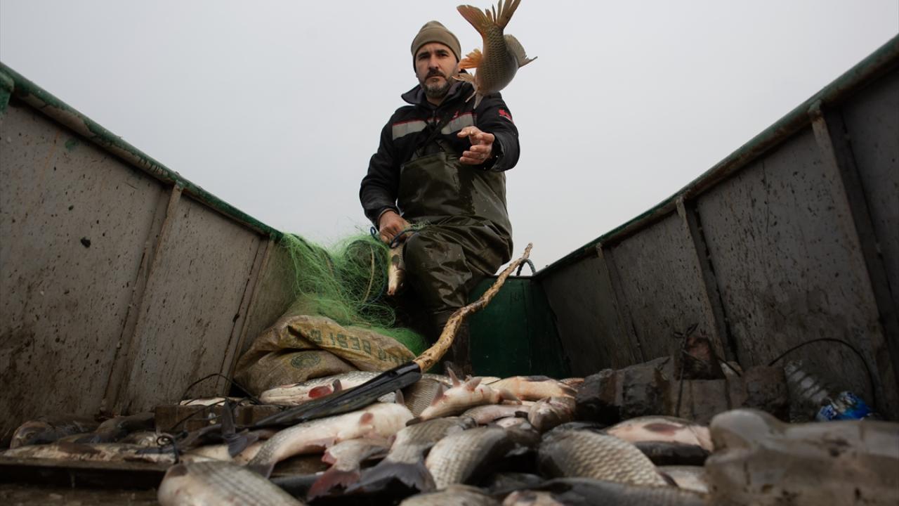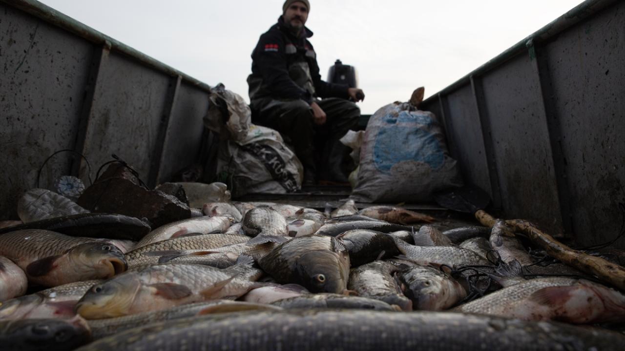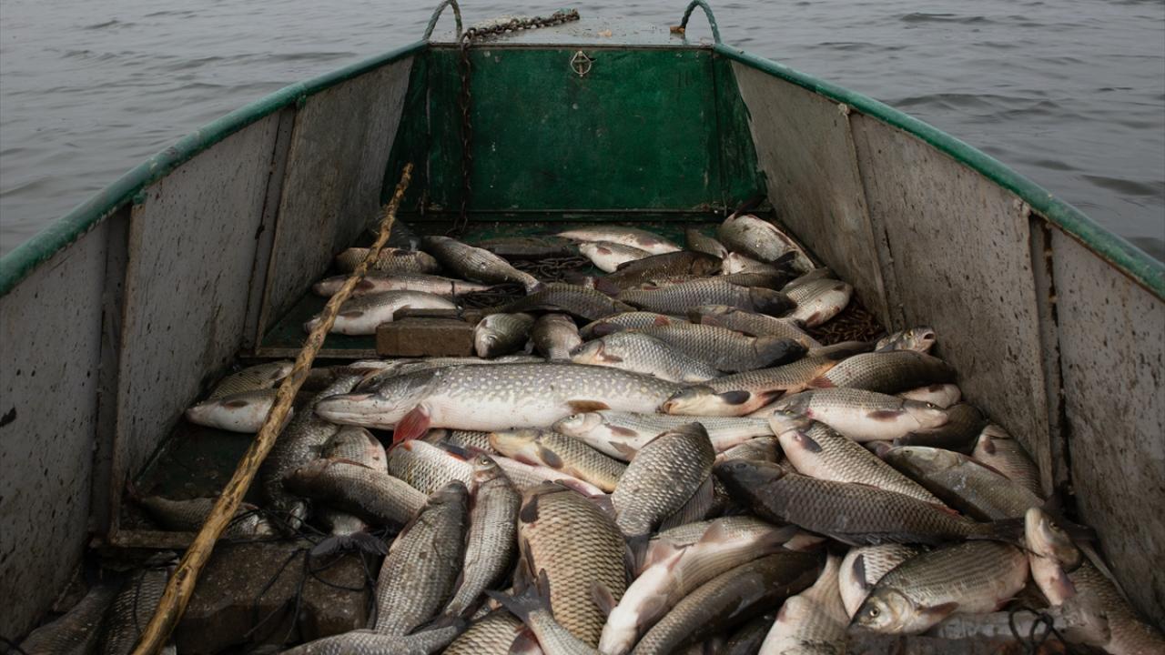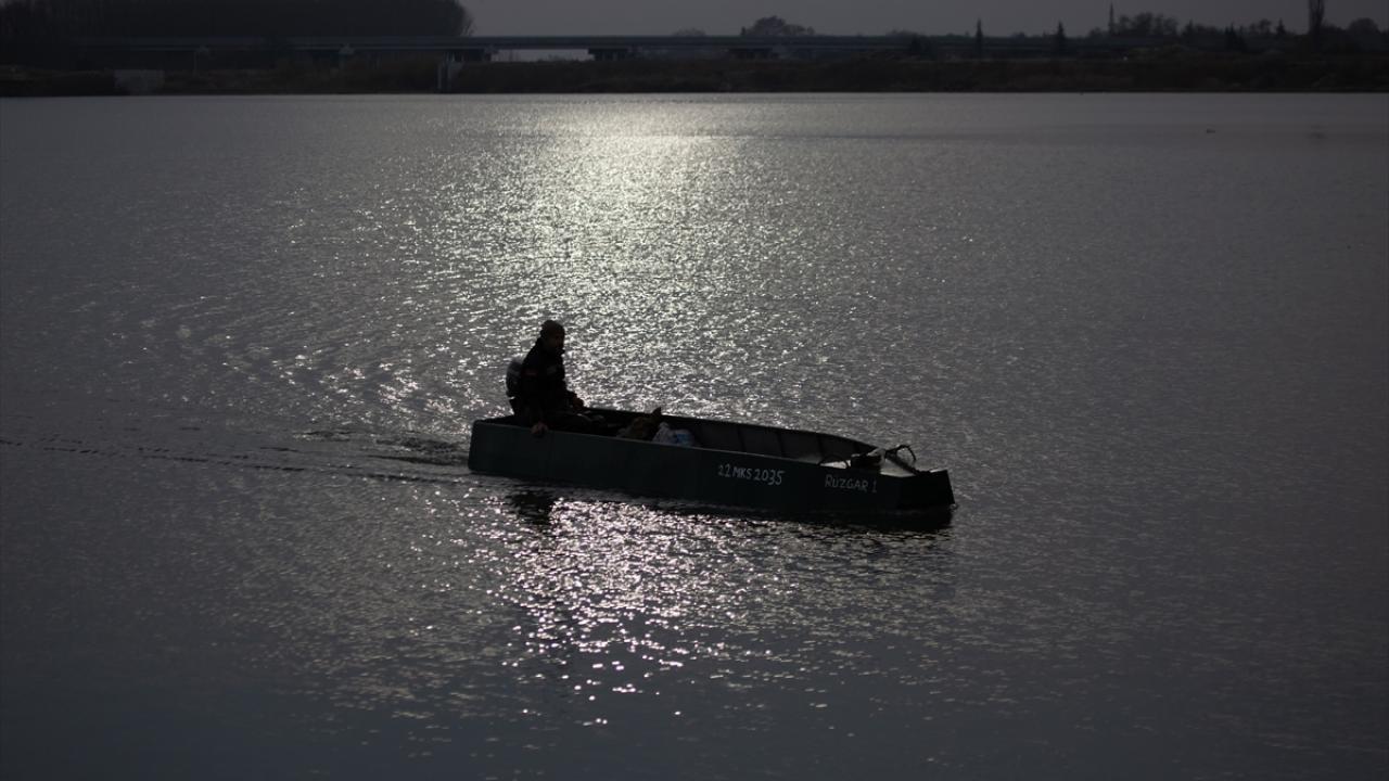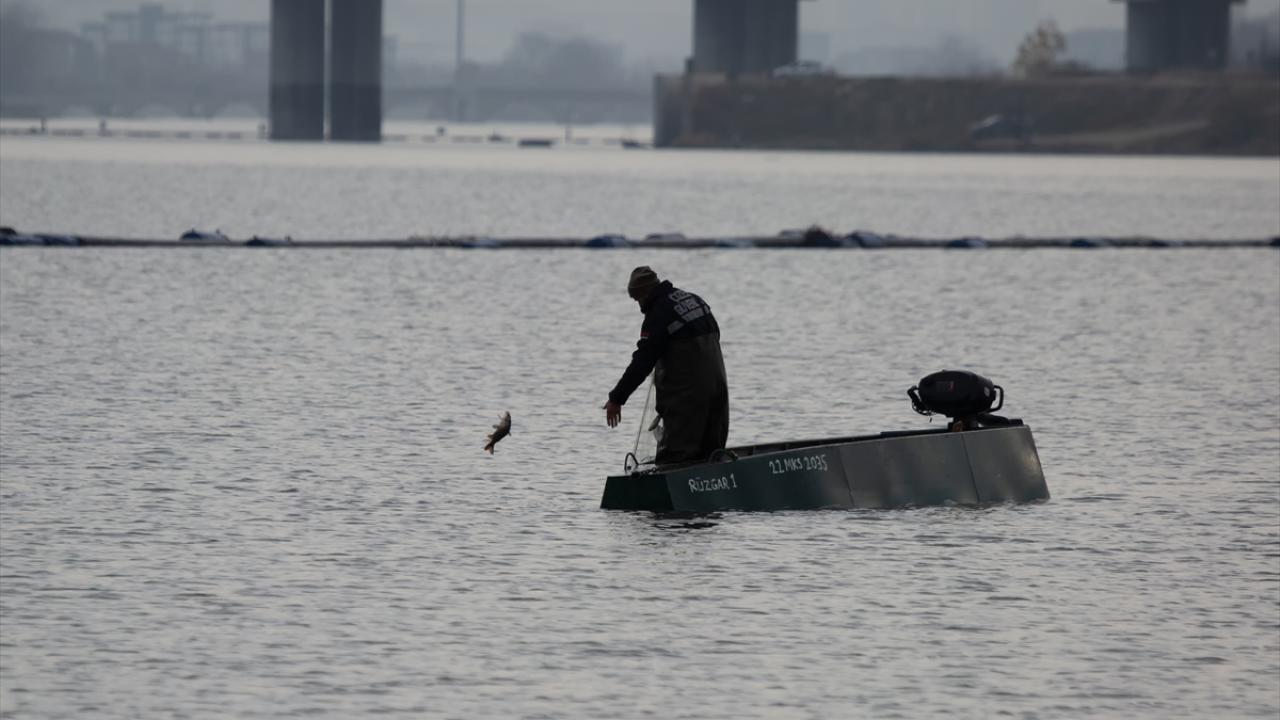 Edirne'de balıkçılar, Meriç ve Tunca nehirlerinde gece suya bıraktıkları ağlarını, sabahın erken saatlerinde toplamaya başlıyor.