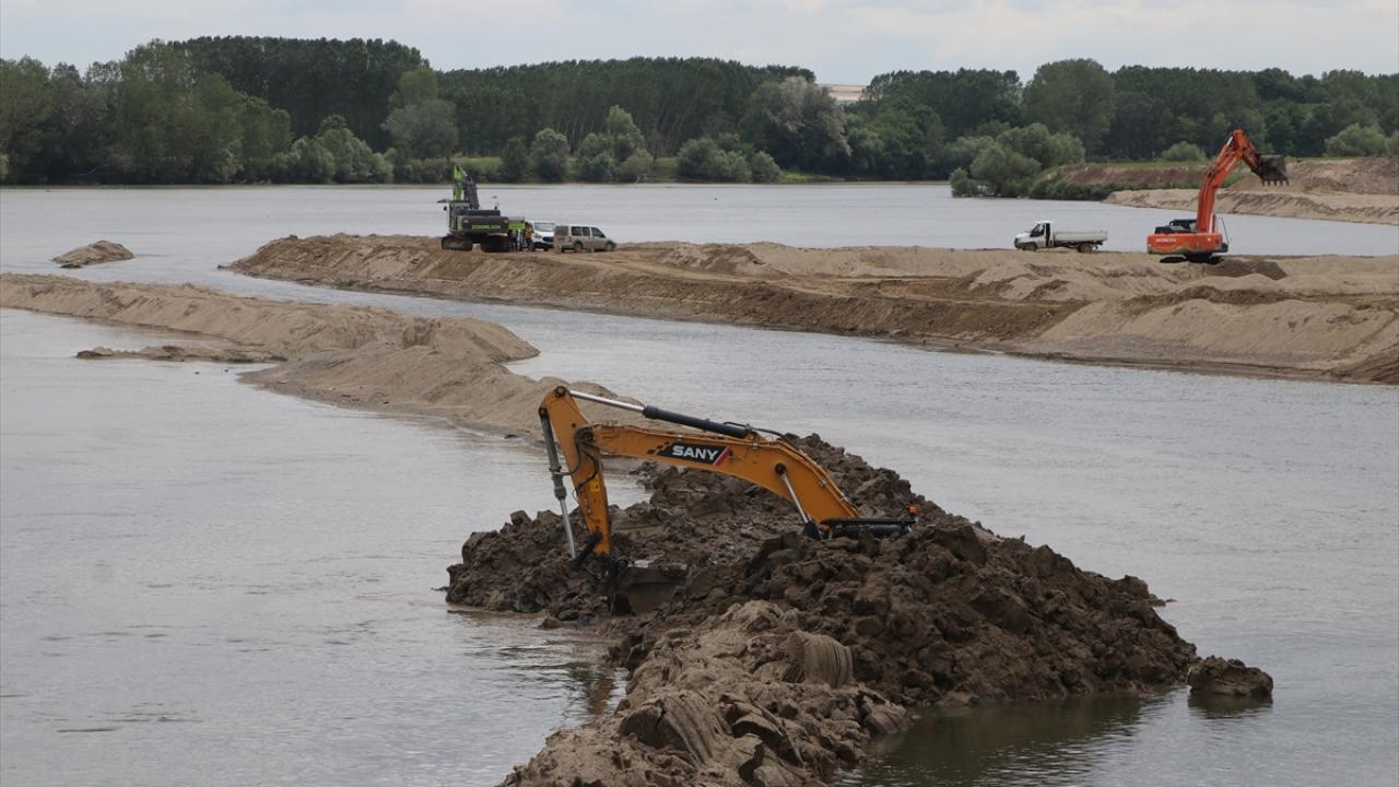 Kepçelerle kamyonlara doldurulan kumlar, nehirlerdeki ve Kanal Edirne kıyılarındaki sedde güçlendirme çalışmalarında kullanılıyor.