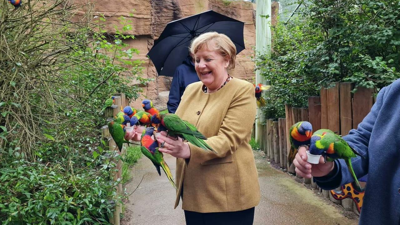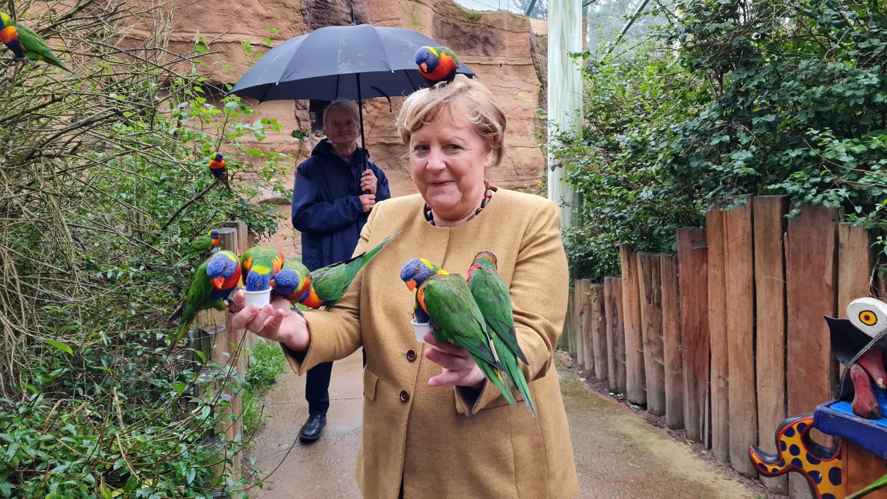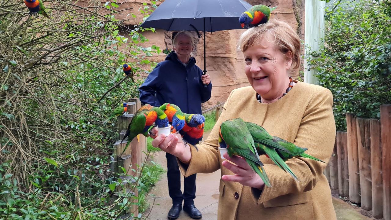 Başbakanlık görevini bırakmaya hazırlanan Almanya Başbakanı Merkel, kuş parkını ziyaret etti. Ortaya ilginç görüntüler çıktı.