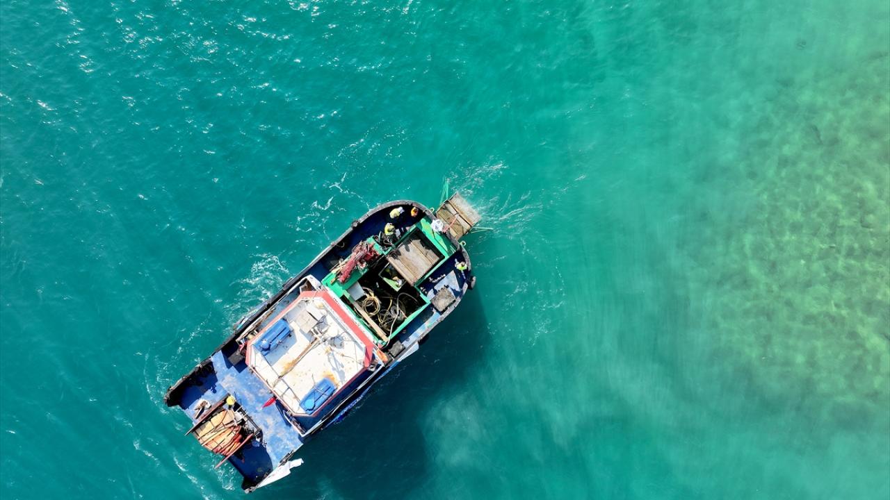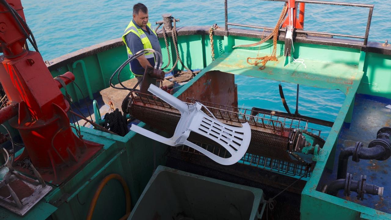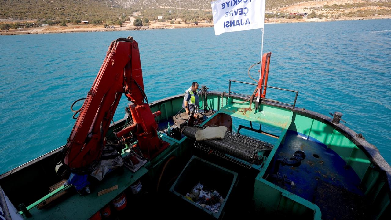 Taşucu, İncekum, Boğsak, Liman Kalesi mevkilerinde gerçekleşen çalışmada, sünger, tahta parçası, şişe, plastik bidon ve benzeri atıklar teknenin önündeki aparat yardımıyla topladı.