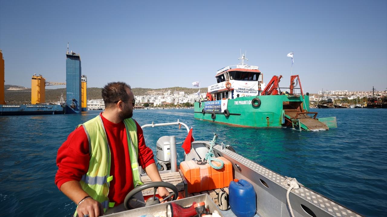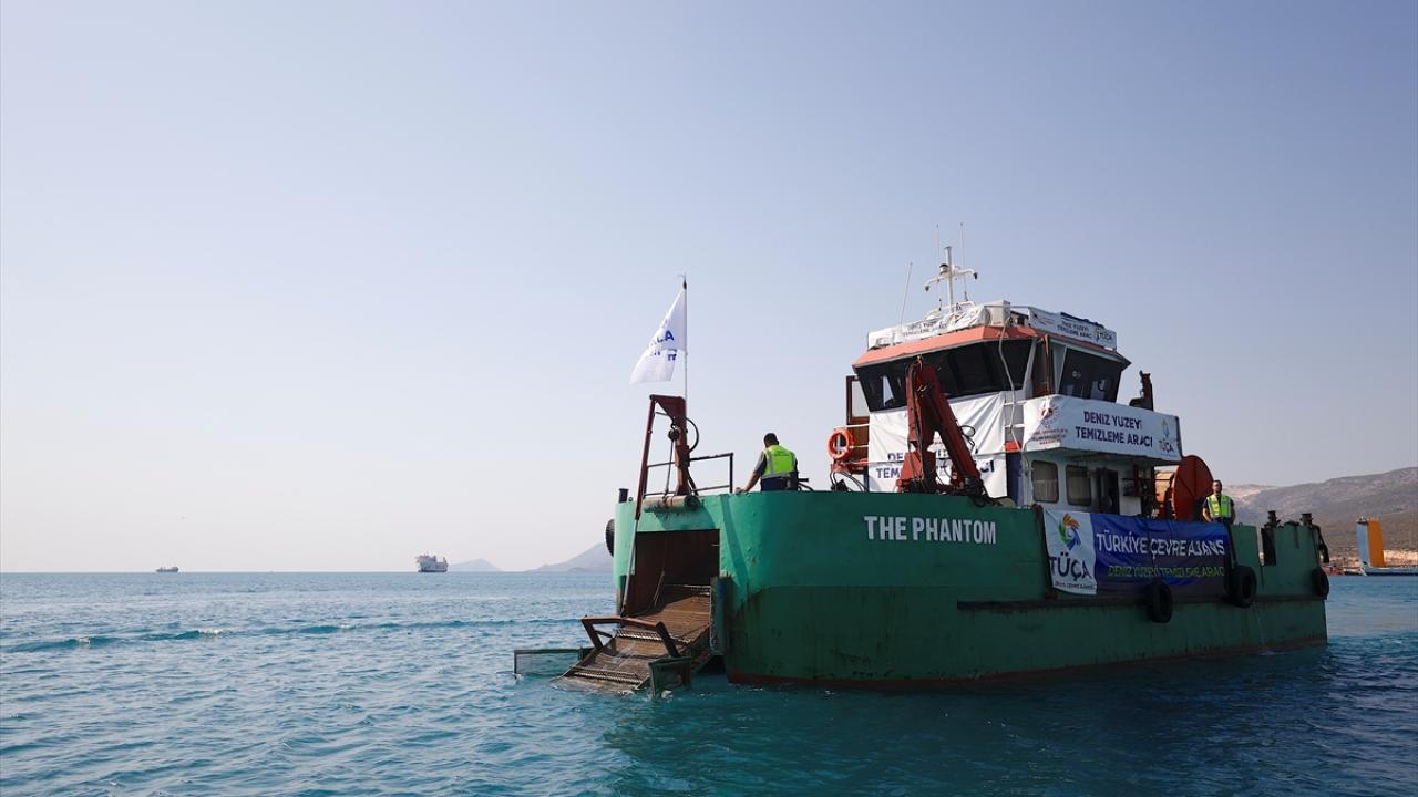 Sabah saatlerinde Silikfe ilçesi Taşucu Limanı`ndaki iskeleden "The Phantom" isimli deniz yüzeyi temizleme aracıyla denize açılan ekipler, çeşitli alanlarda tarama yaptı.