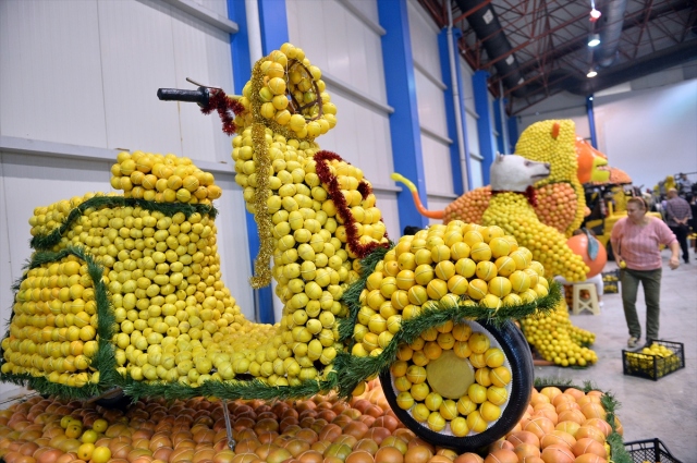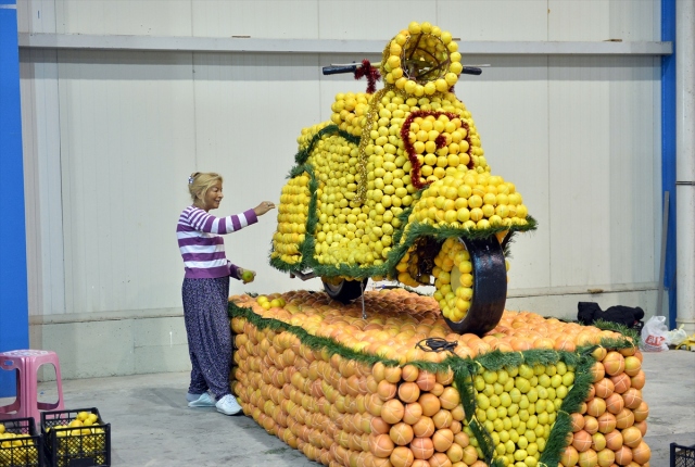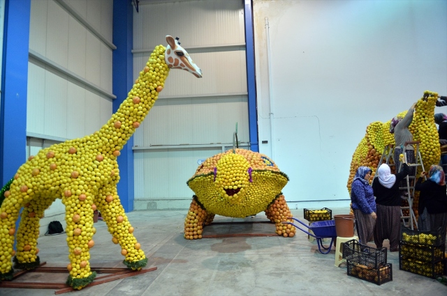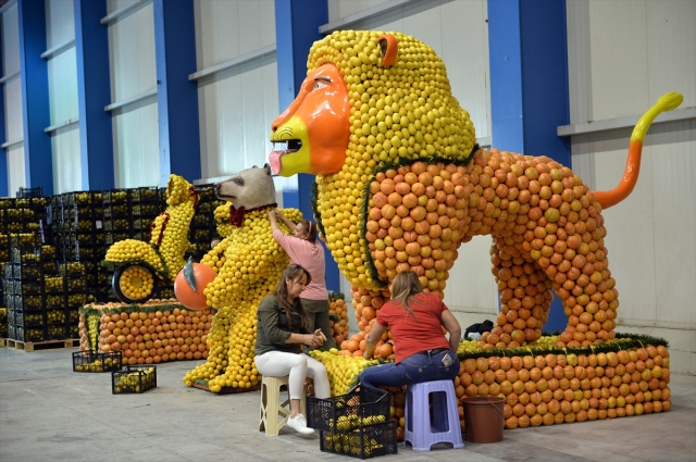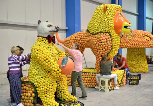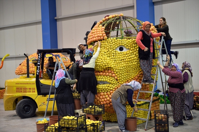 Mersin'de bu yıl 17-18 Kasım'da 6. kez düzenlenecek olan Uluslararası Mersin Narenciye Festivali'nin hazırlıkları kapsamında binlerce narenciye ürünü kullanılarak ilginç figürler oluşturuluyor.