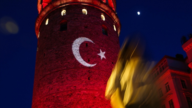 İstanbul'un tarihi simgeleri kırmızı beyaza büründü
