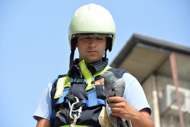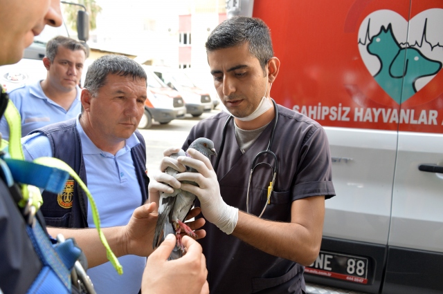 Mersin'de ağaçta mahsur kalan sakat güvercin kurtarıldı