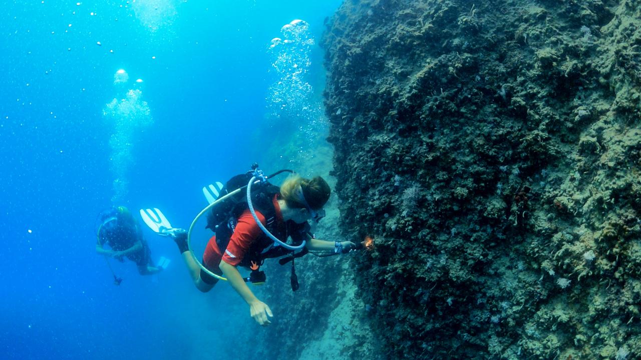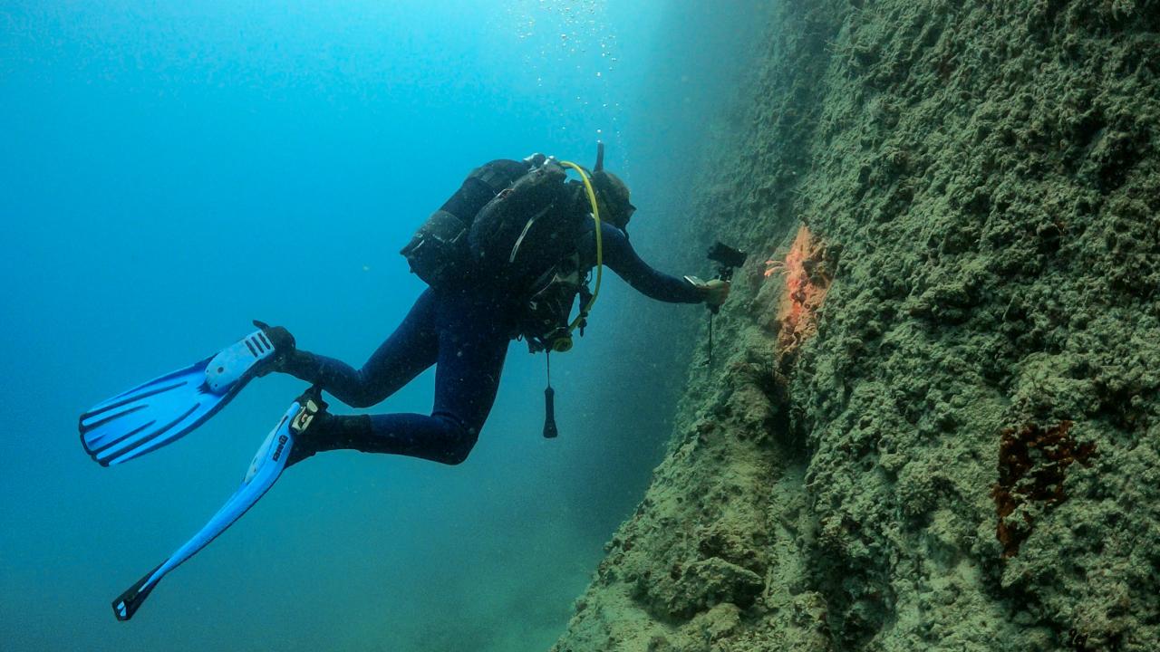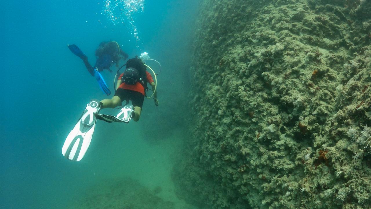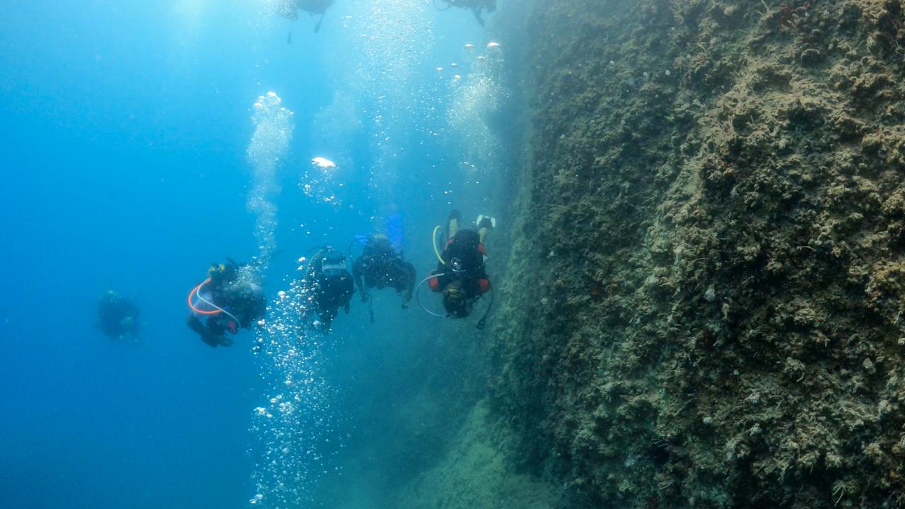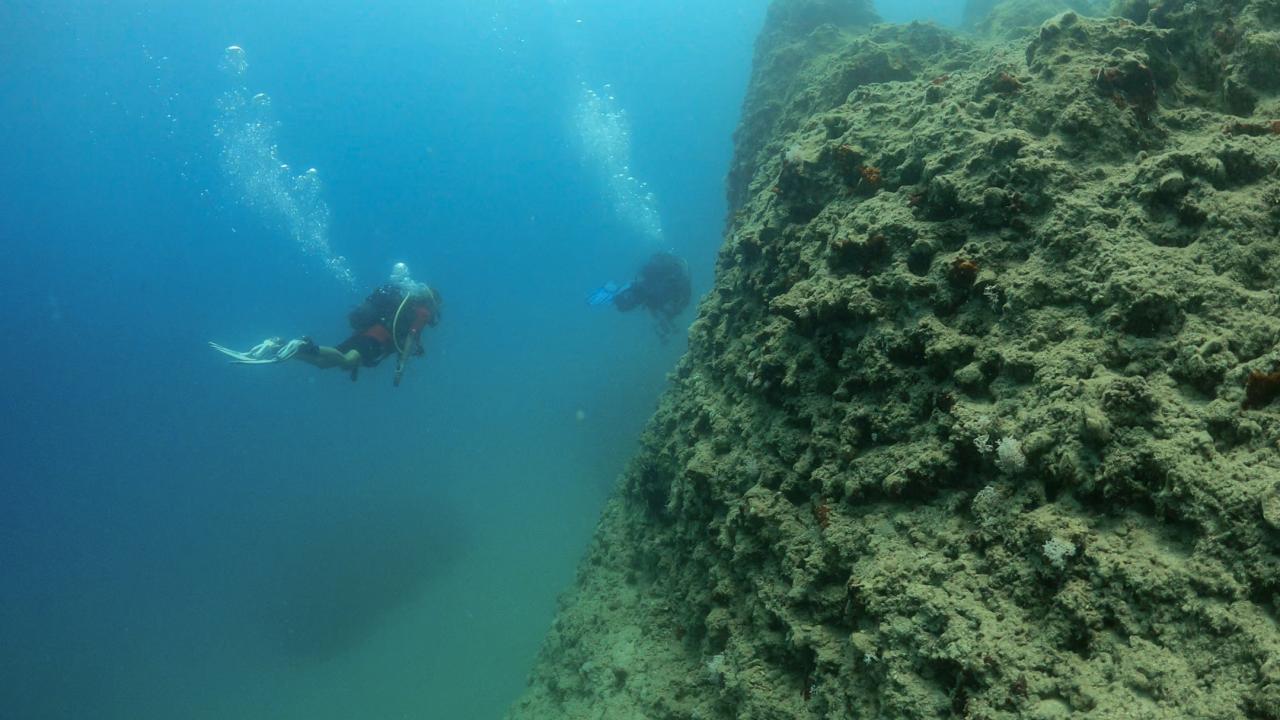 Mersin'in Silifke ilçesindeki Dana Adası'nın su altındaki uzantısı olan uçurumlar ve mağaralar, derin dalış yapmak isteyen profesyonel dalgıçların uğrak yeri oluyor.