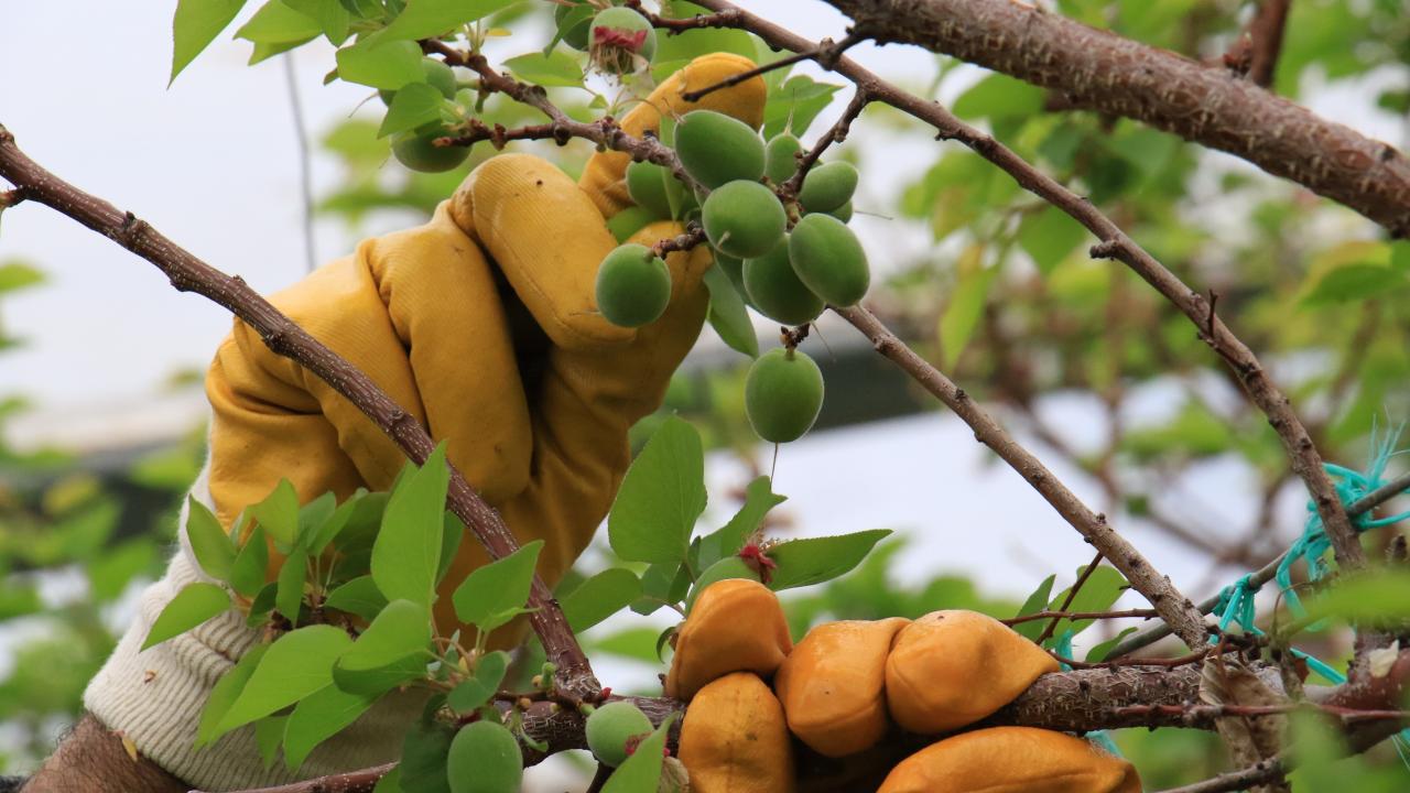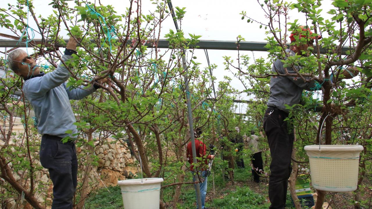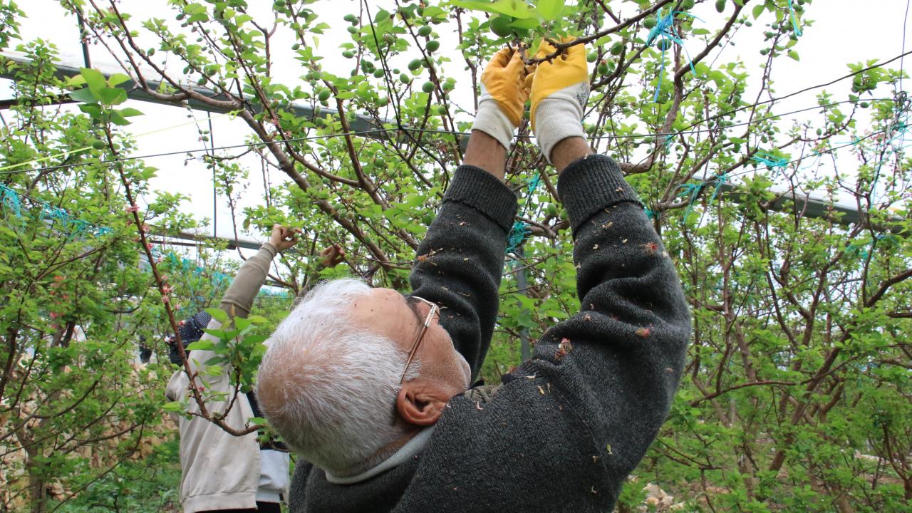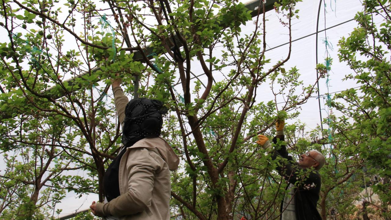 Örtü altında yetiştirilen çağlalar, olgunlaşmış meyvesi kadar ilgi görüyor.