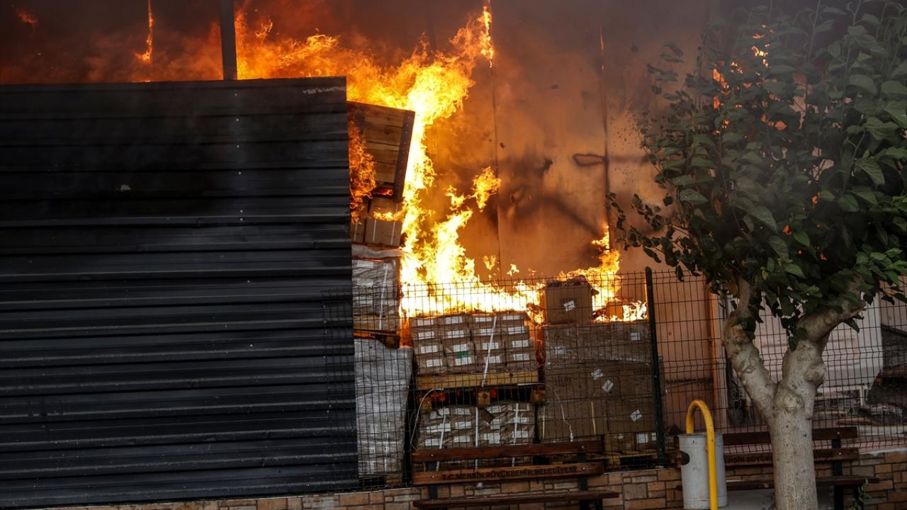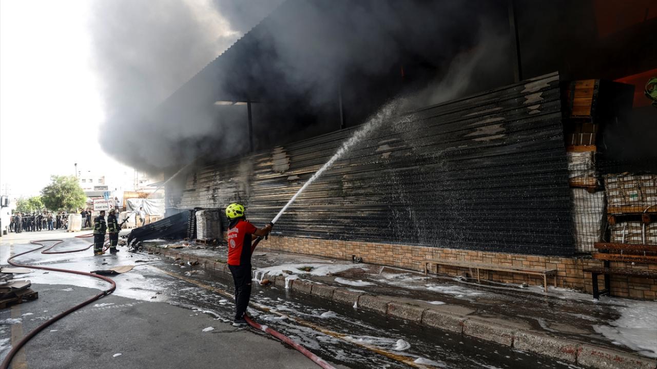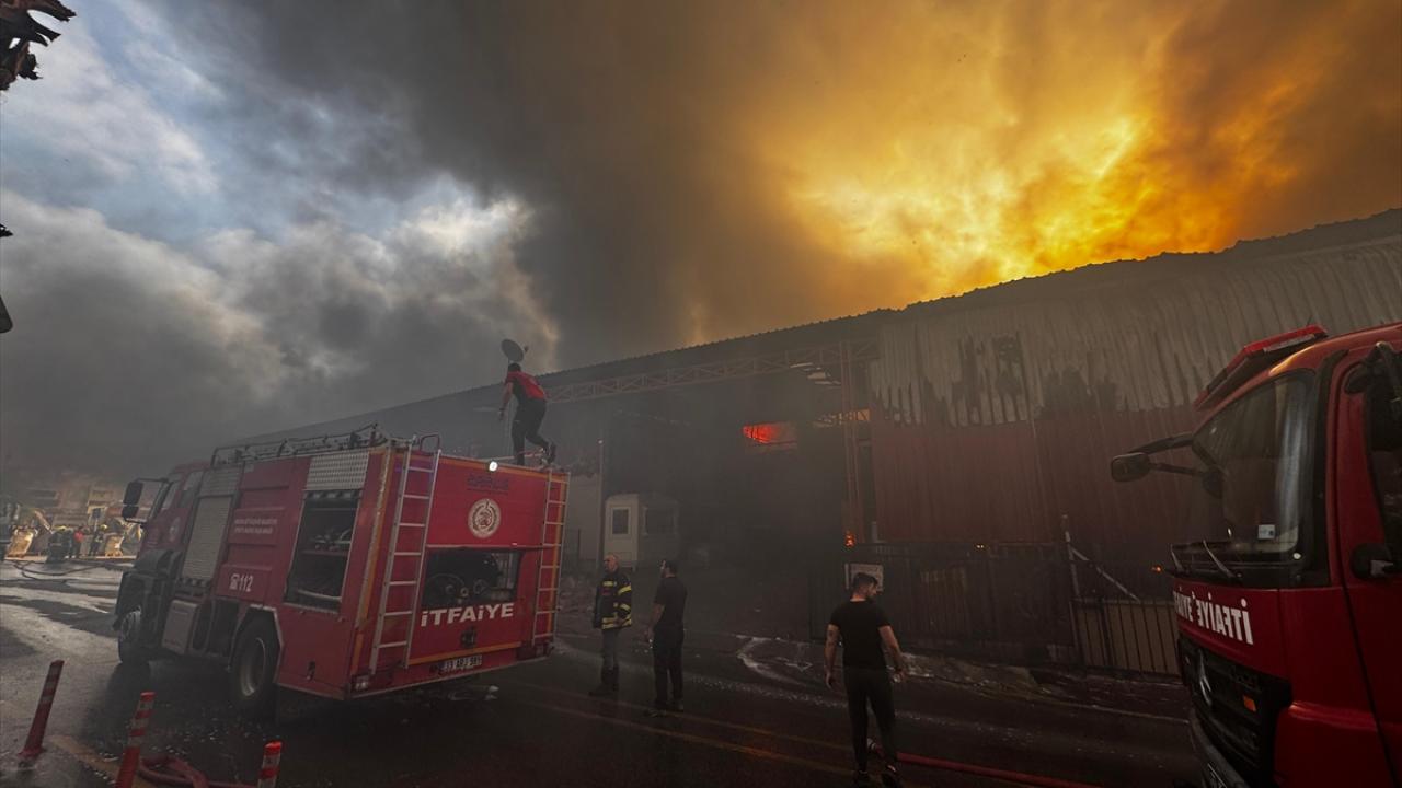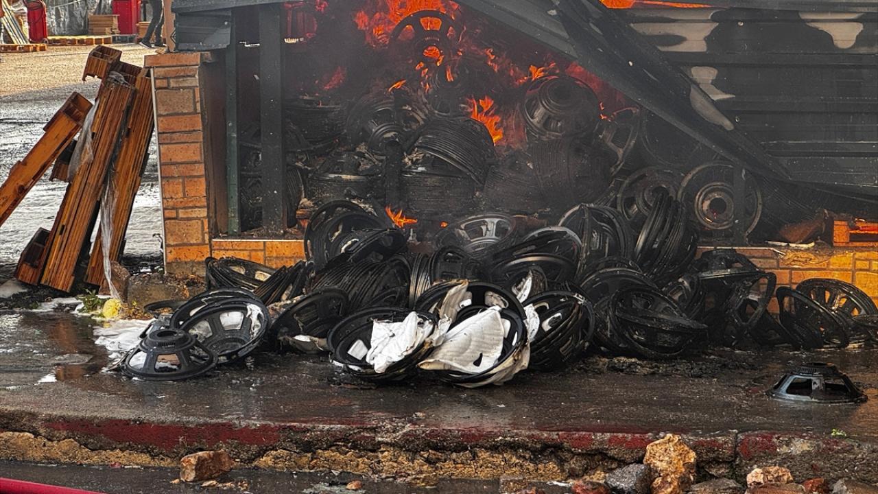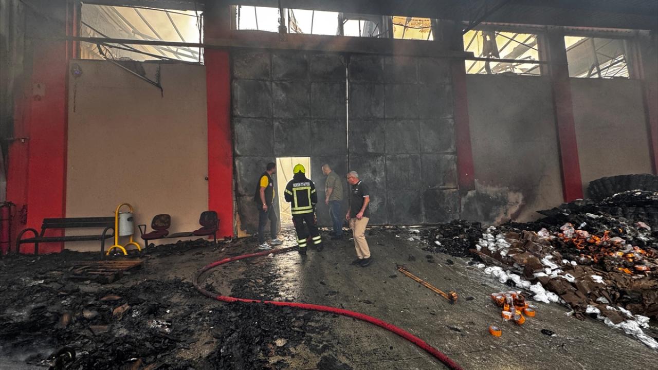 Ekiplerin uzun uğraşları sonucu yangının kontrol altına alındığı işletmede soğutma çalışmaları devam ediyor