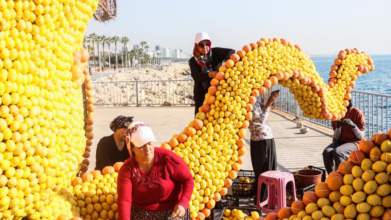 Mersin'de 8. kez düzenlenecek Narenciye Festivali kapsamında portakal, limon ve greyfurtlar, kadınların çalışmasıyla balina, aslan, helikopter gibi figürlere dönüştürülüyor.
