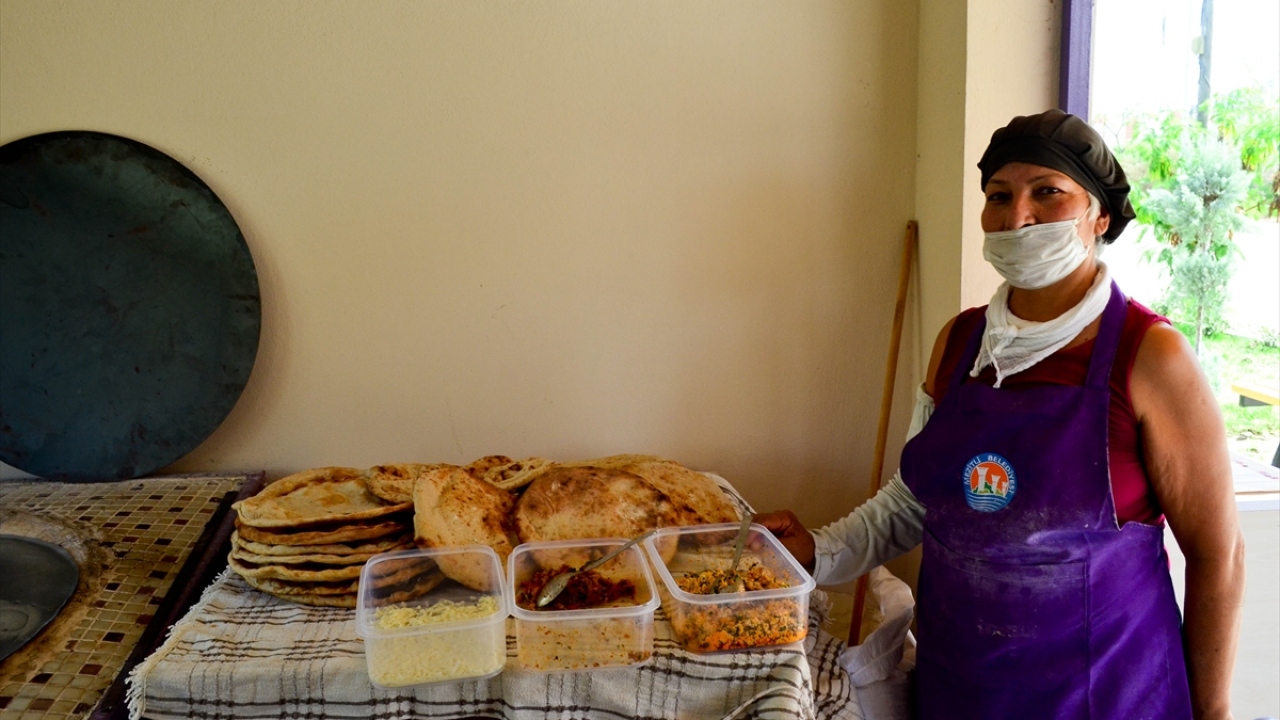Mezitli Belediyesince tahsis edilen tandır evlerinde sabah saatlerinde mesaiye başlayan kadınlar, tandır ekmeğinin yanı sıra sac ekmeği, sıkma, börek, kahke ve çörek yapıyor.