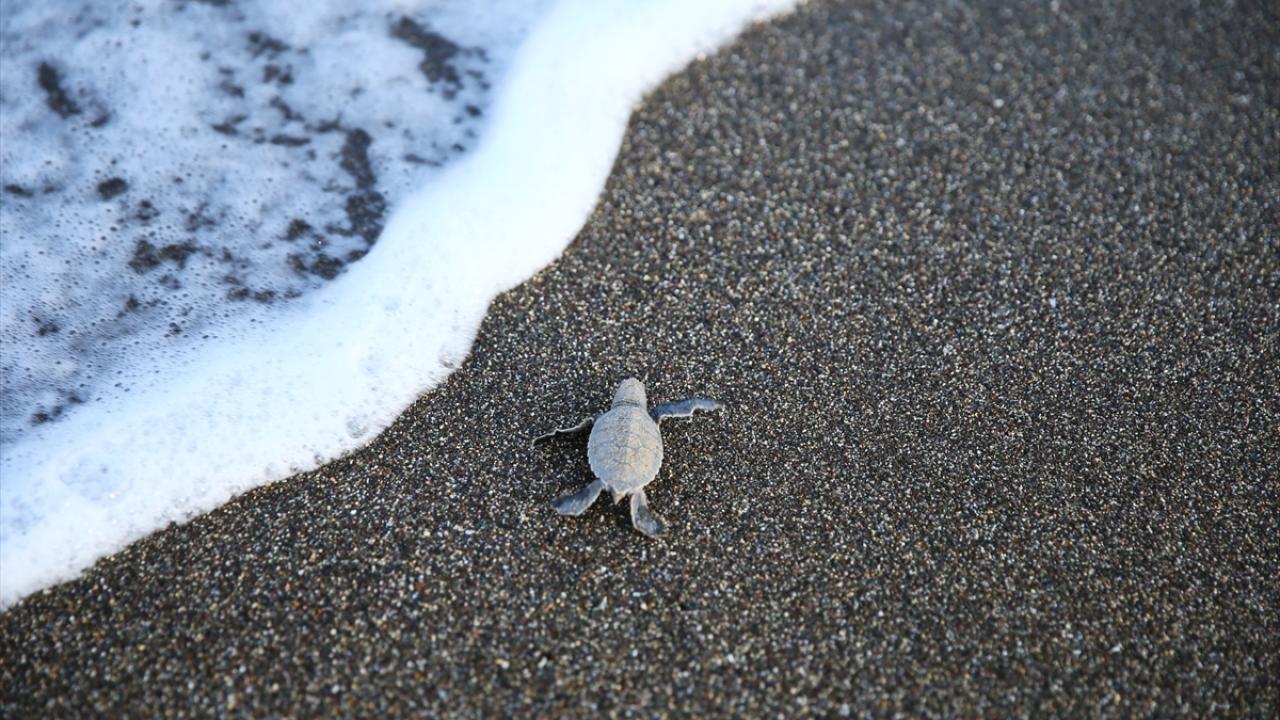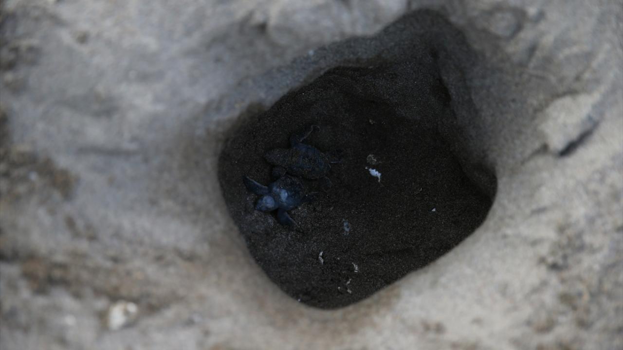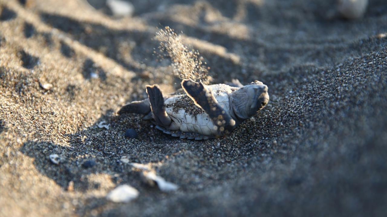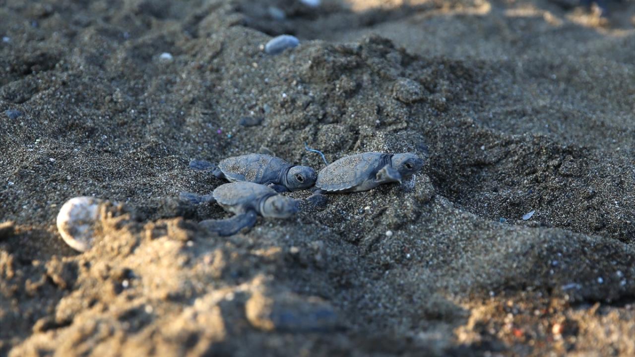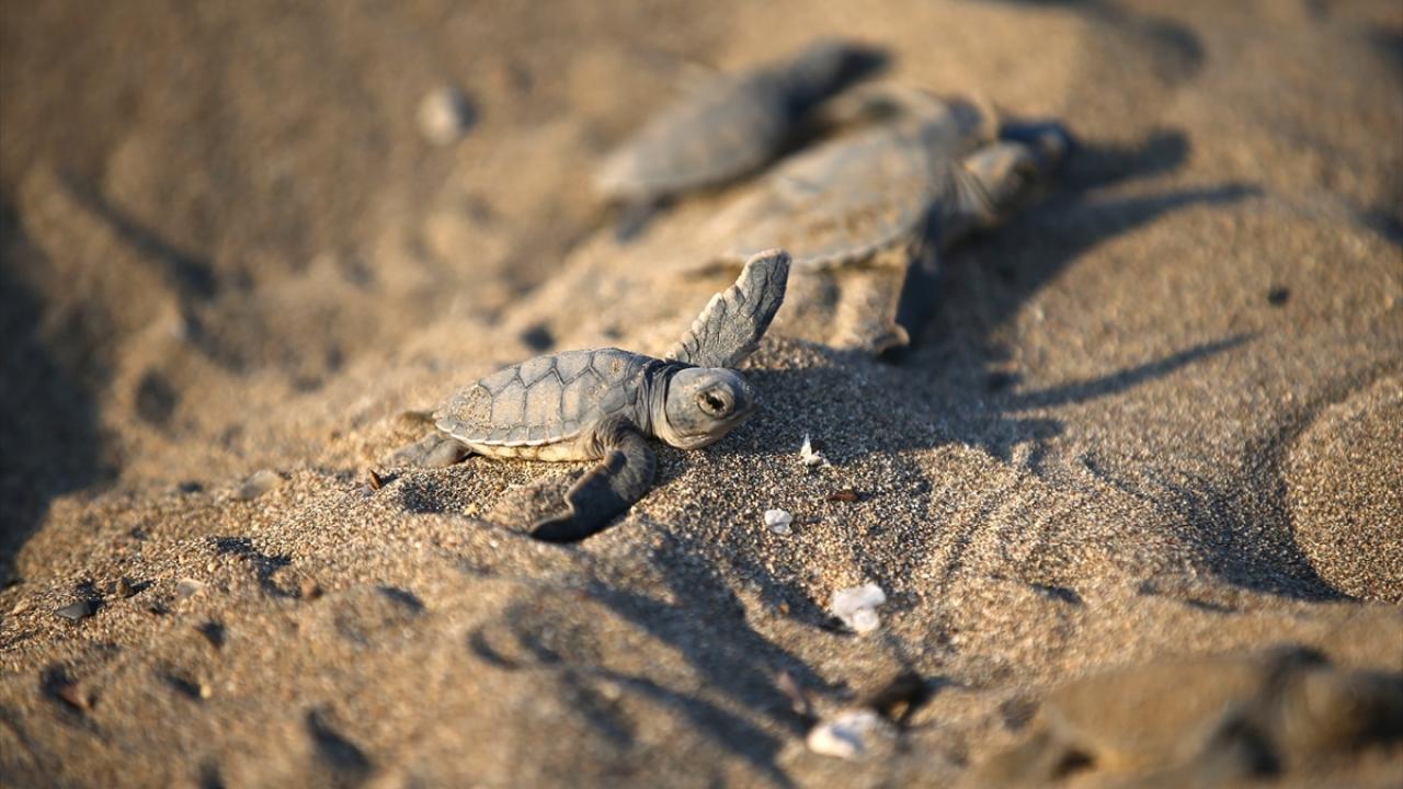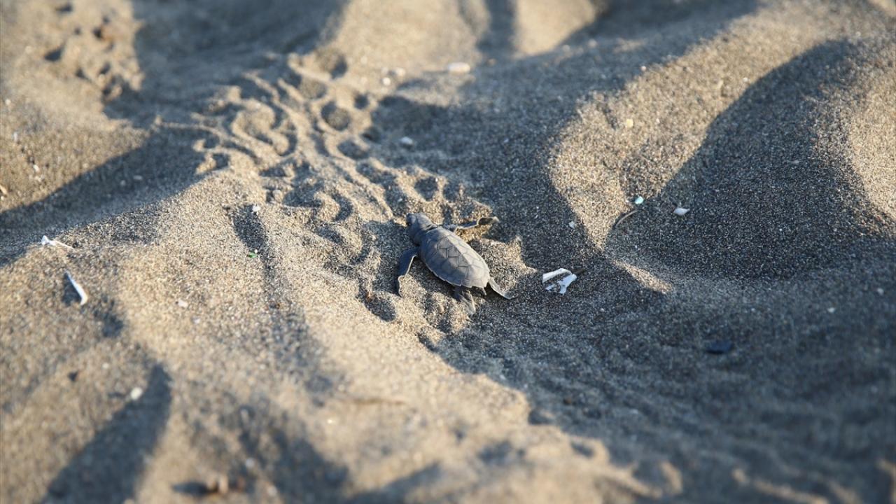 Anaç kaplumbağaların, mayıs ayından itibaren Davultepe 100. Yıl Tabiat Parkı`ndaki kumsala yaptığı yuvalarda kuluçka dönemini tamamlayan yavrular, yumurtalarından çıkmaya başladı.
