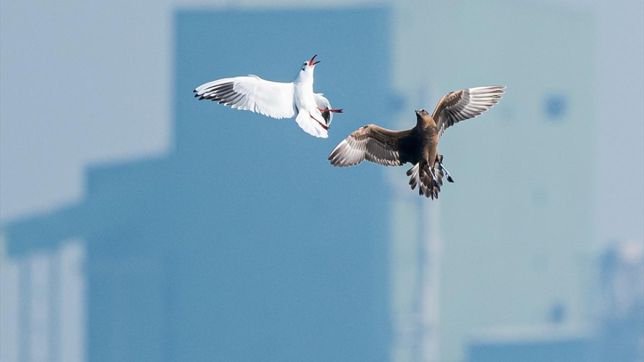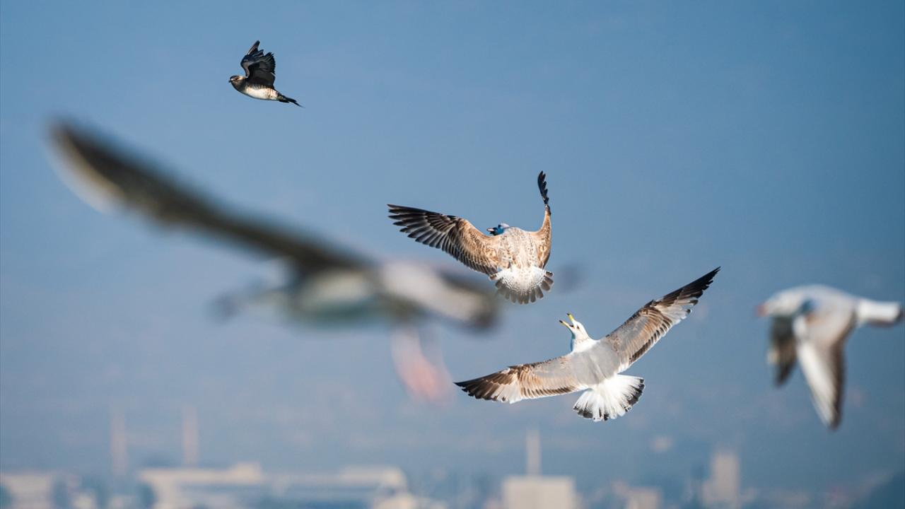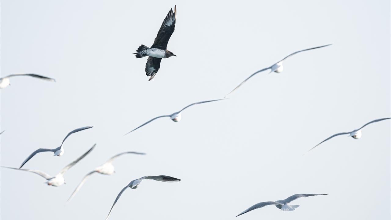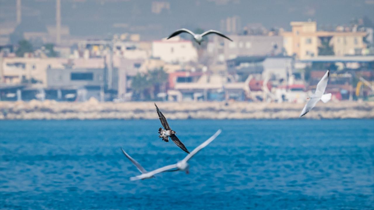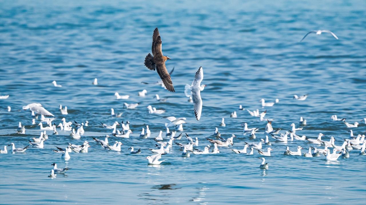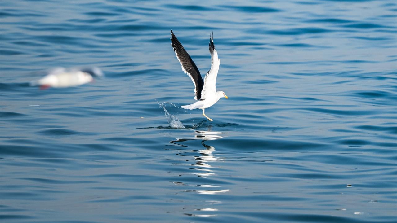 Aralarında "korsan martı" olarak bilinen türün de olduğu martı sürüsü, beslenmek için adeta birbirleriyle yarıştı.