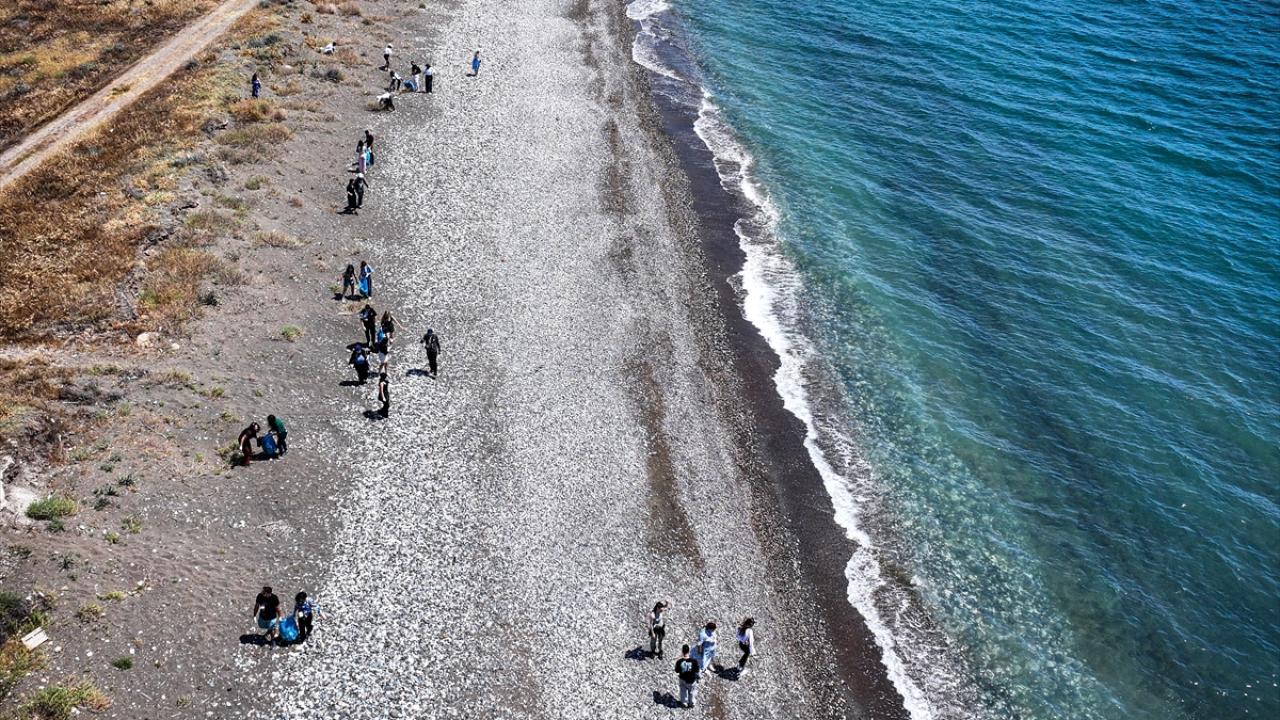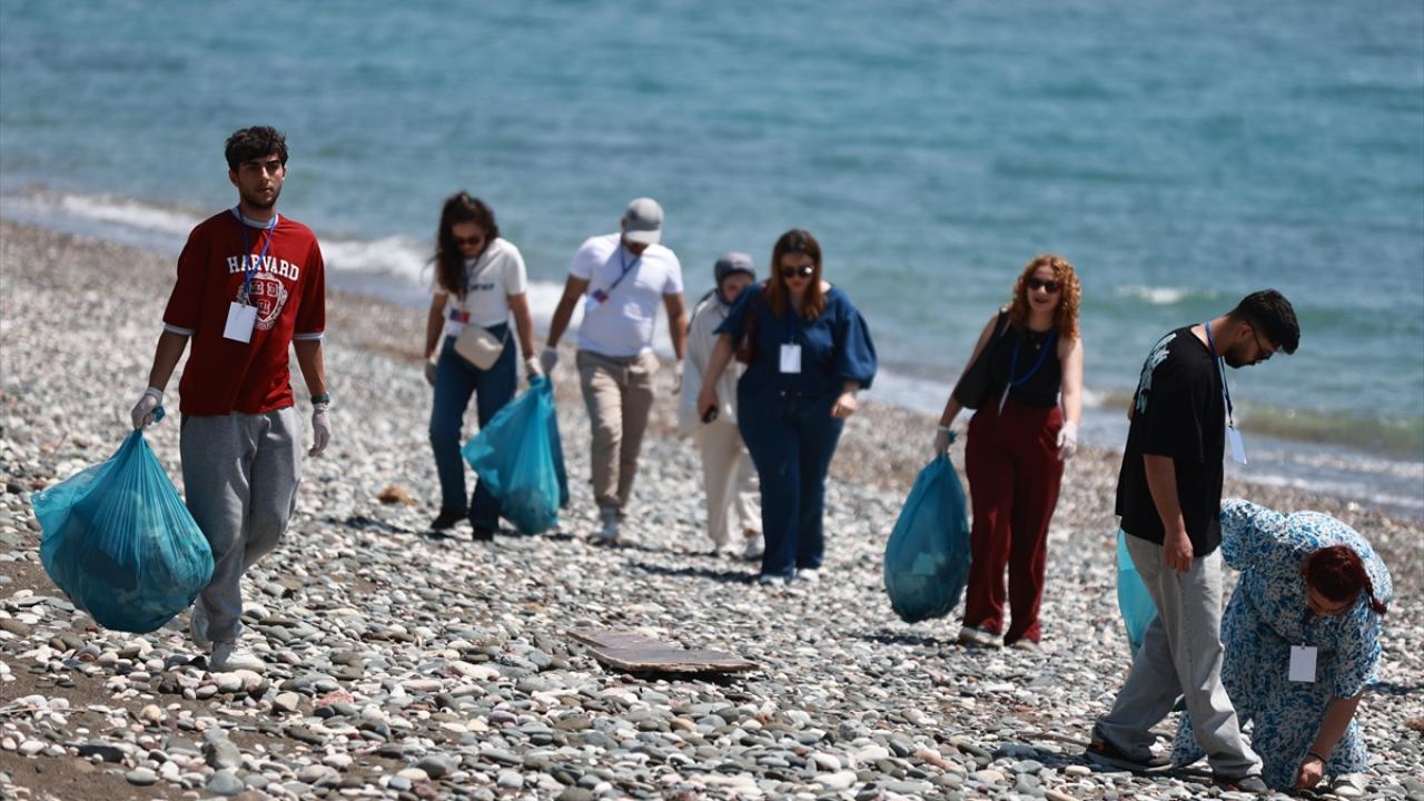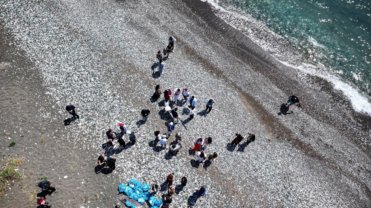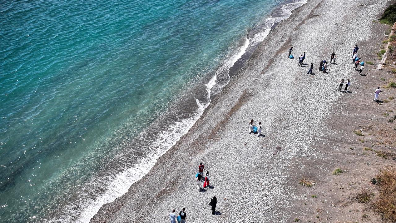 Daha sonra kumsalda temizlik yapan öğrenciler, topladıkları atıkları poşetlere doldurdu.