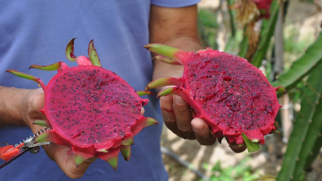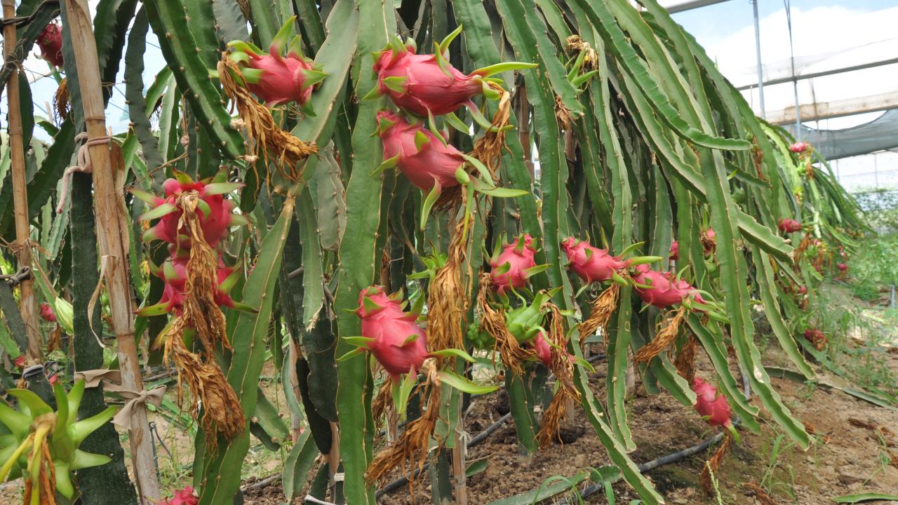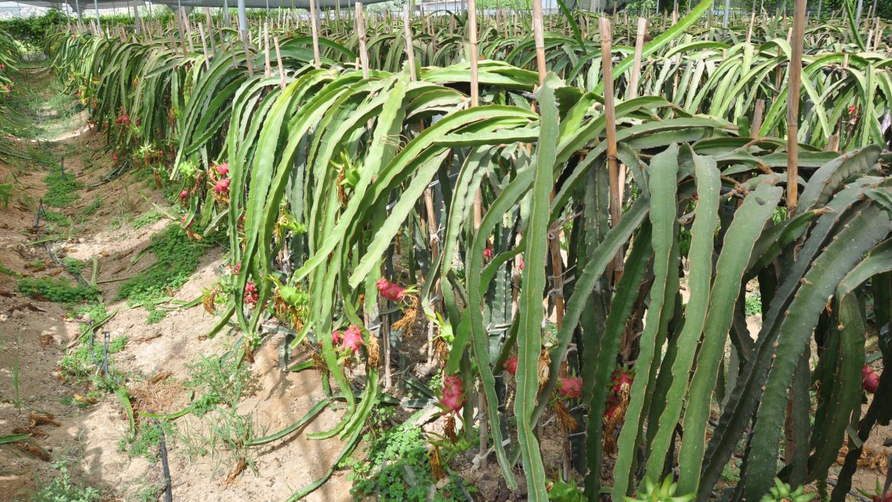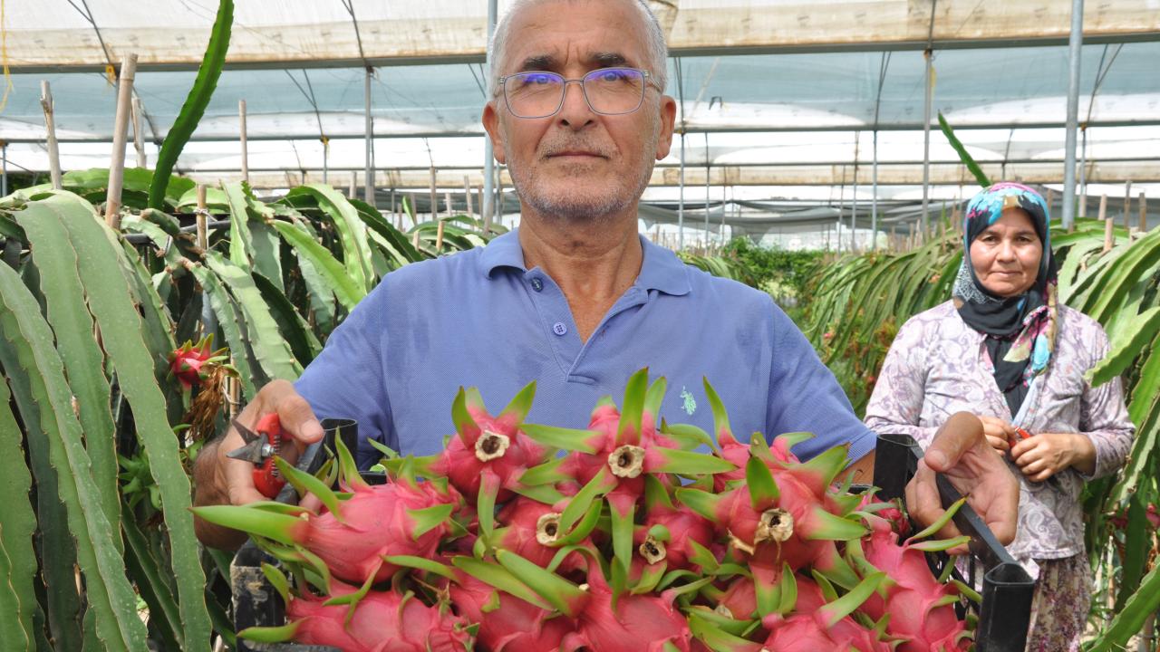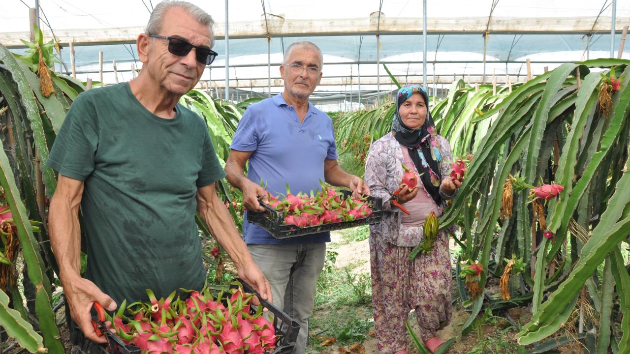 İlçede yaş meyve ve sebze ürünlerine alternatif olması amacıyla örtü altında yetiştirilen ejder meyvesinde hasat dönemi başladı.