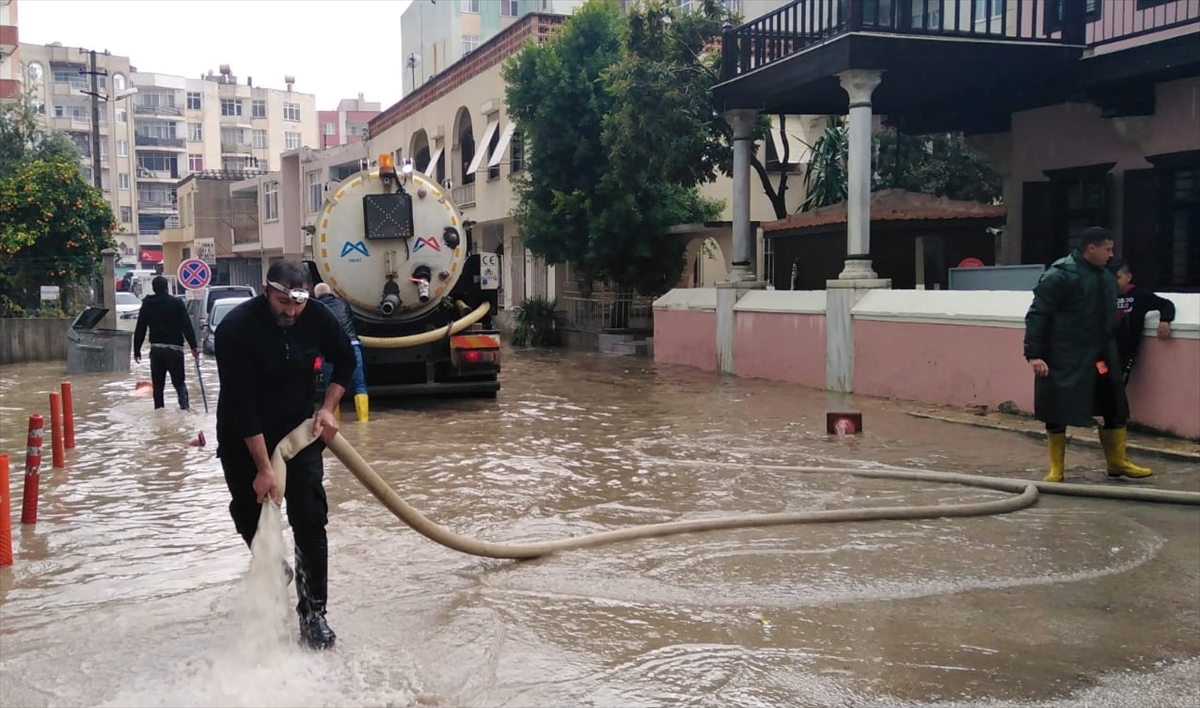 Büyükşehir Belediyesi ekipleri, su baskını oluşan bölgelerde çalışma başlattı.