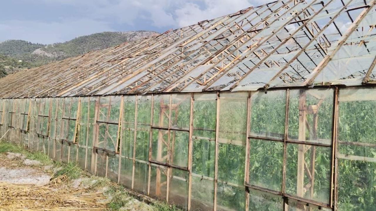 Akdere Mahallesi`nde salatalık ekili bazı seraların camları kırılırken, Kurtuluş Mahallesi`ndeki meyve ağaçları ve sebze bahçeleri zarar gördü.