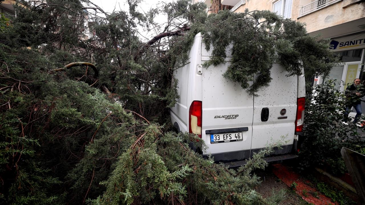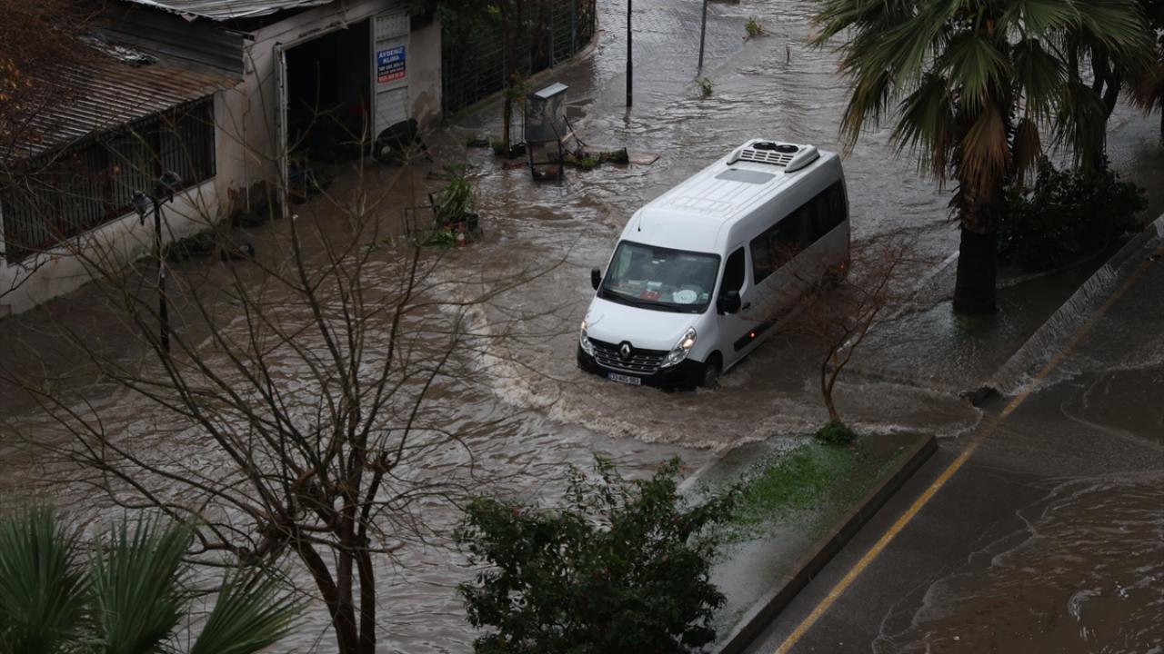 Mersin'de etkili olan sağanak ve dolu, hayatı olumsuz etkiledi.