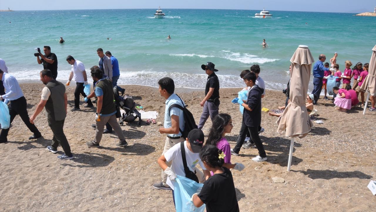 Silifke Kaymakamı Abdullah Aslaner, diğer ilçe protokolü üyeleri ve öğrenciler de sahildeki atıkları topladı.