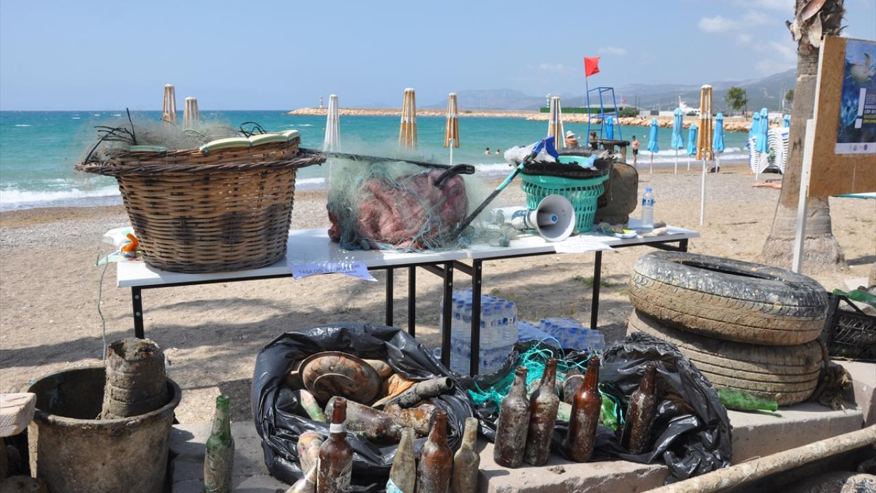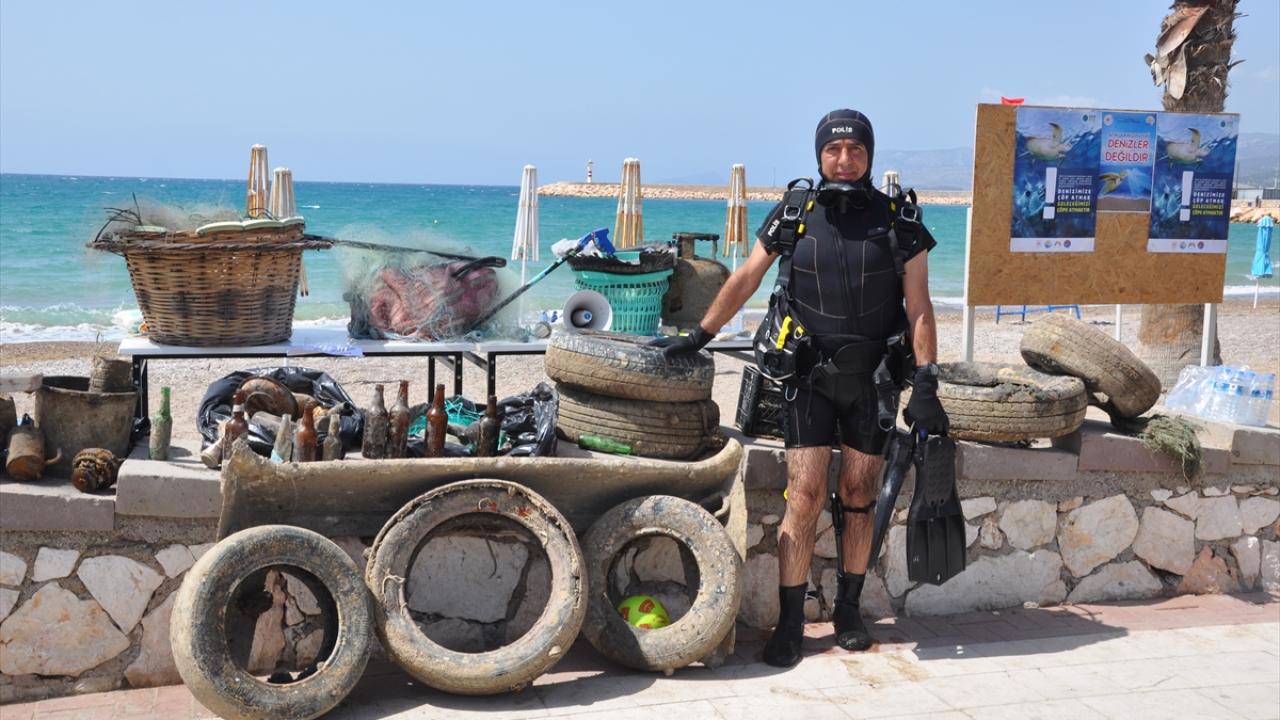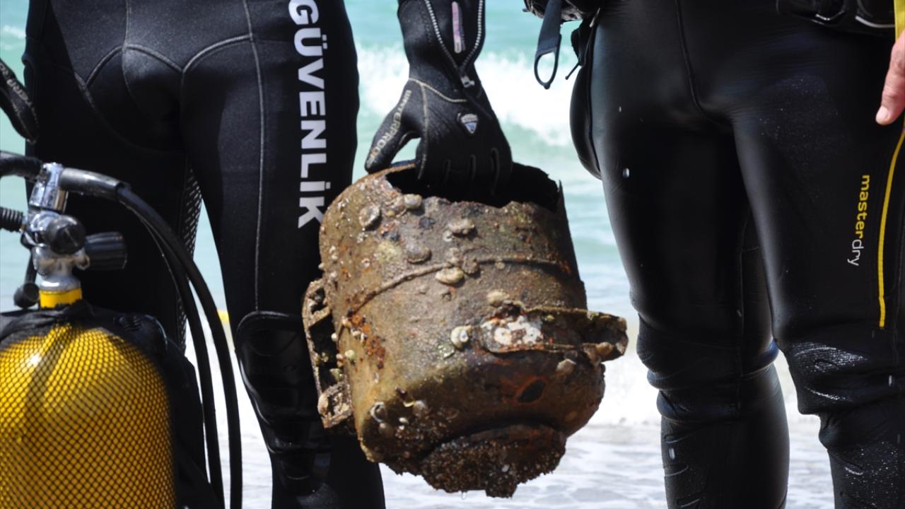 Dalgıçlar deniz dibinden yasa dışı balık avlama malzemeleri başta olmak üzere araba lastiği, cam şişe ve çok sayıda plastik atık çıkardı.
