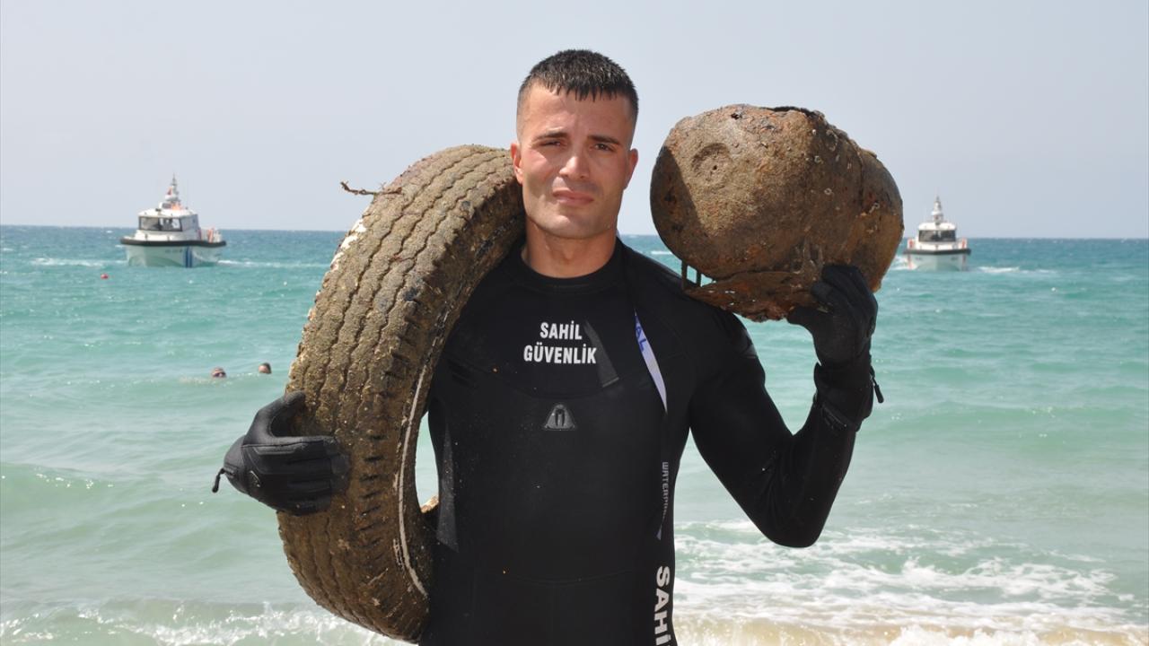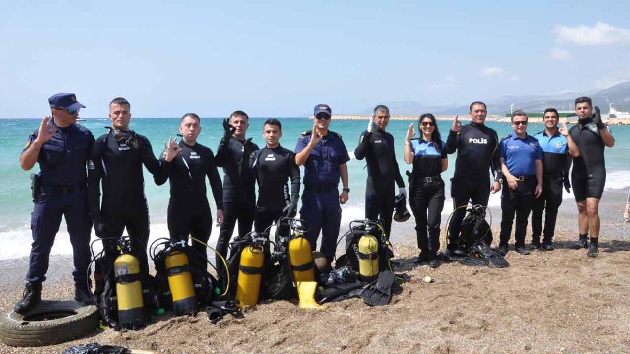 Silifke Sahil Güvenlik Karakol Komutanlığınca Taşucu Mahallesi`ndeki etkinlikte, Sahil Güvenlik Akdeniz Bölge Komutanlığı ve Mersin İl Emniyet Müdürlüğüne bağlı dalgıçlar, deniz dibi temizliği yaptı.