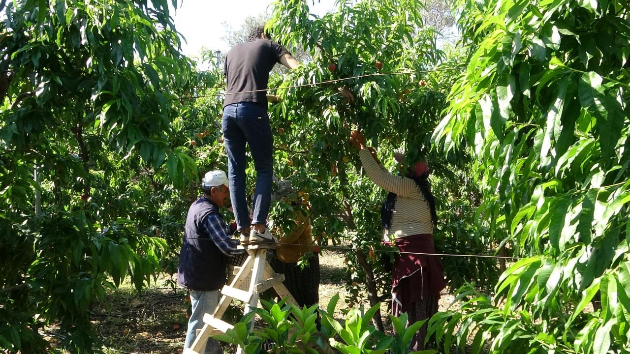 Bunlardan hemen hemen herkesin severek tükettiği şeftalinin de hasadı yapılıyor.