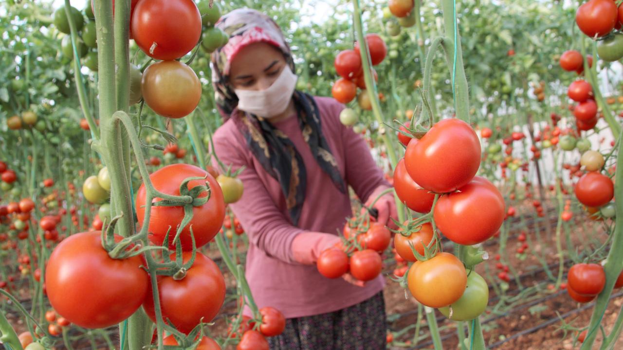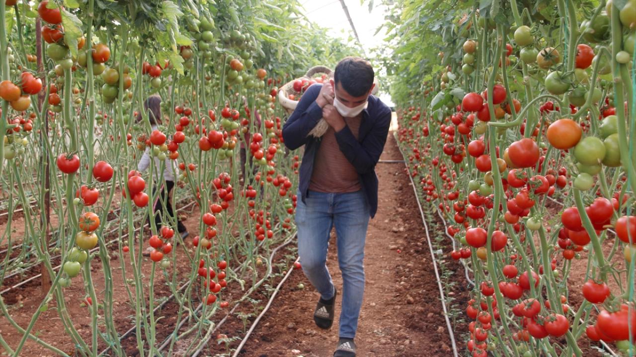 Mersin'de domates üreticileri ve tarım işçileri, yeni tip koronavirüs (Kovid-19) tedbirleri kapsamında uygulanan sokağa çıkma kısıtlamasında da hasat için seraların yolunu tutuyor.