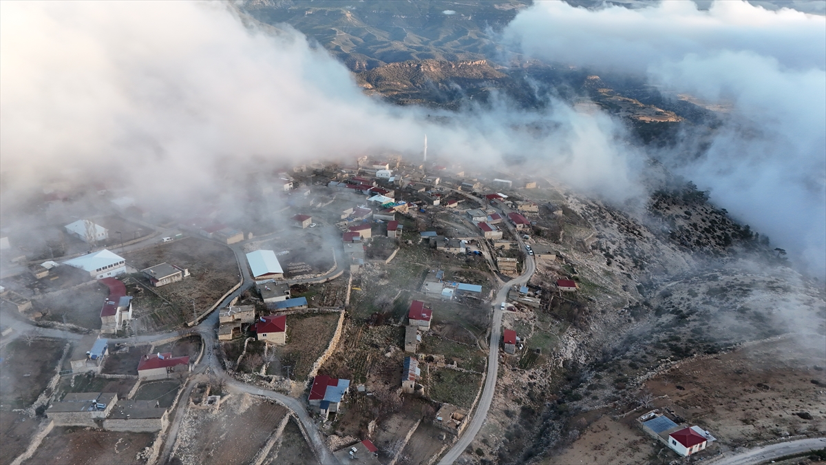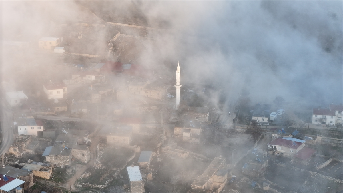 Görüntülerde evler, yollar, cami ve mahalle meydanının sis bulutuyla bütünleşen manzarası yer aldı.