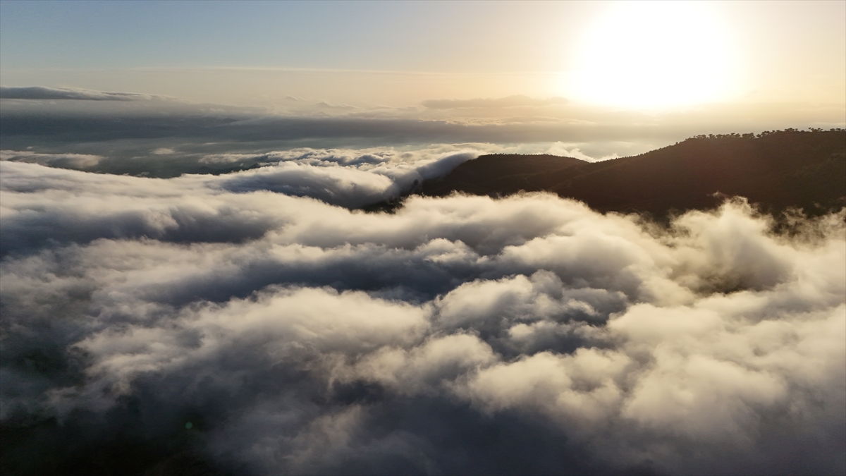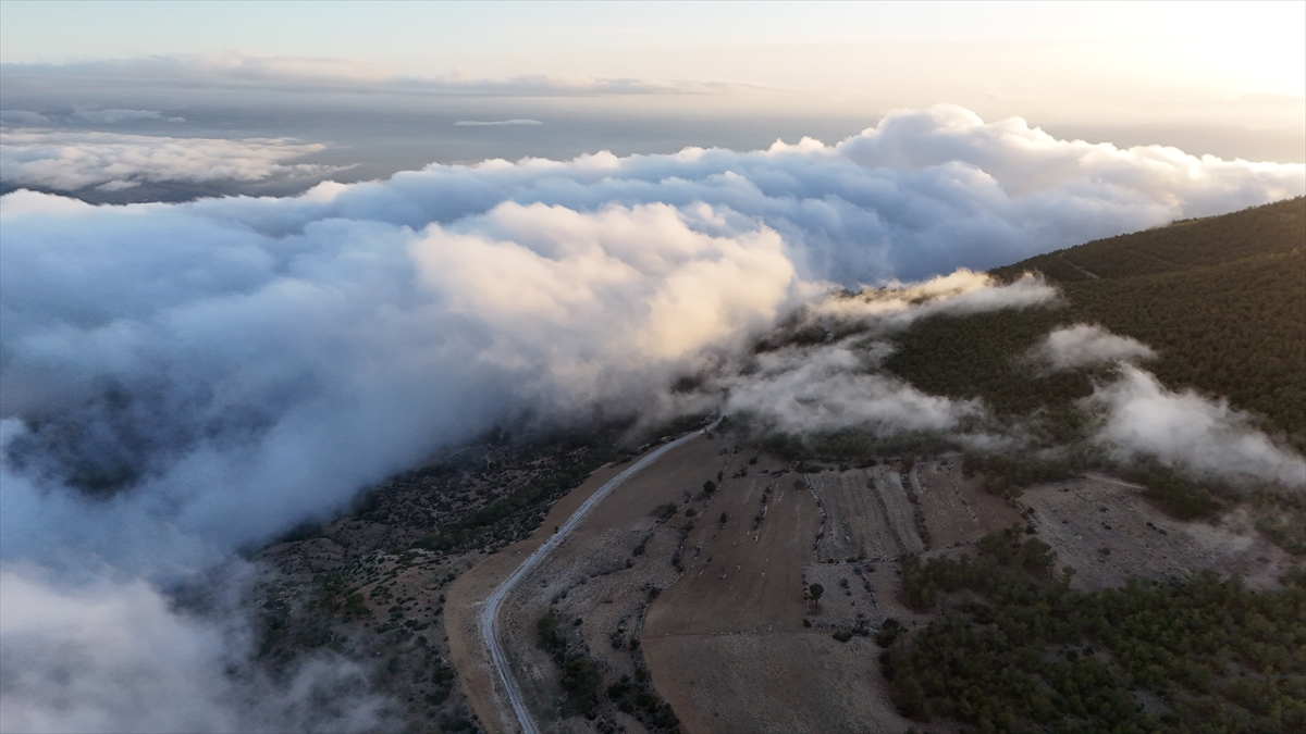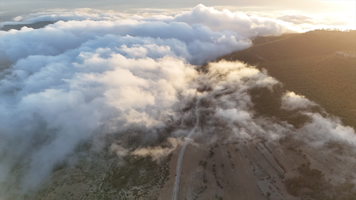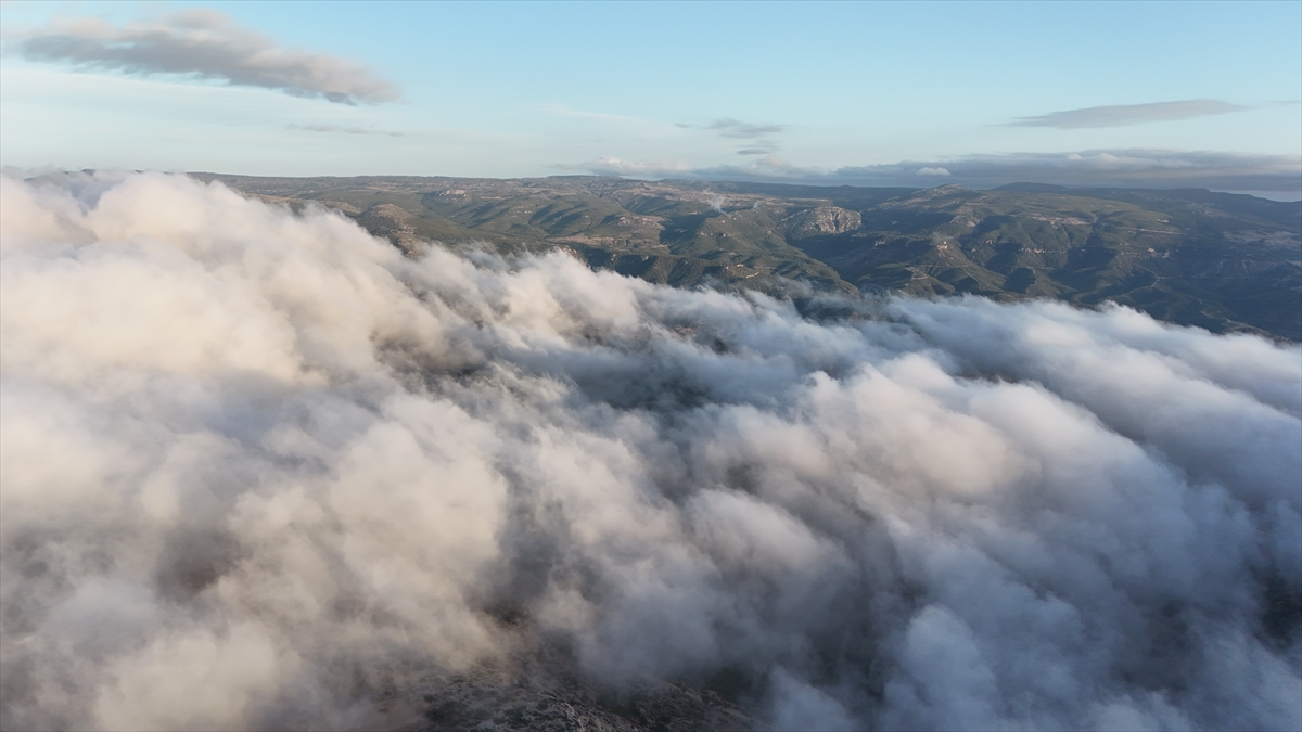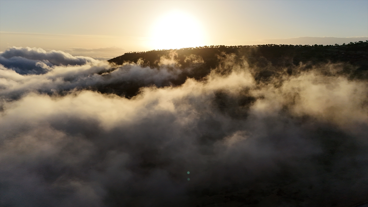 Toros Dağları`nın eteklerinde oluşan sis bulutu dronla görüntülendi.
