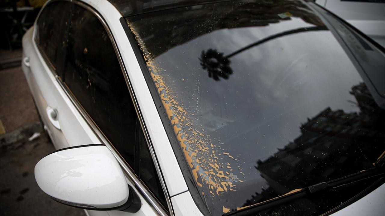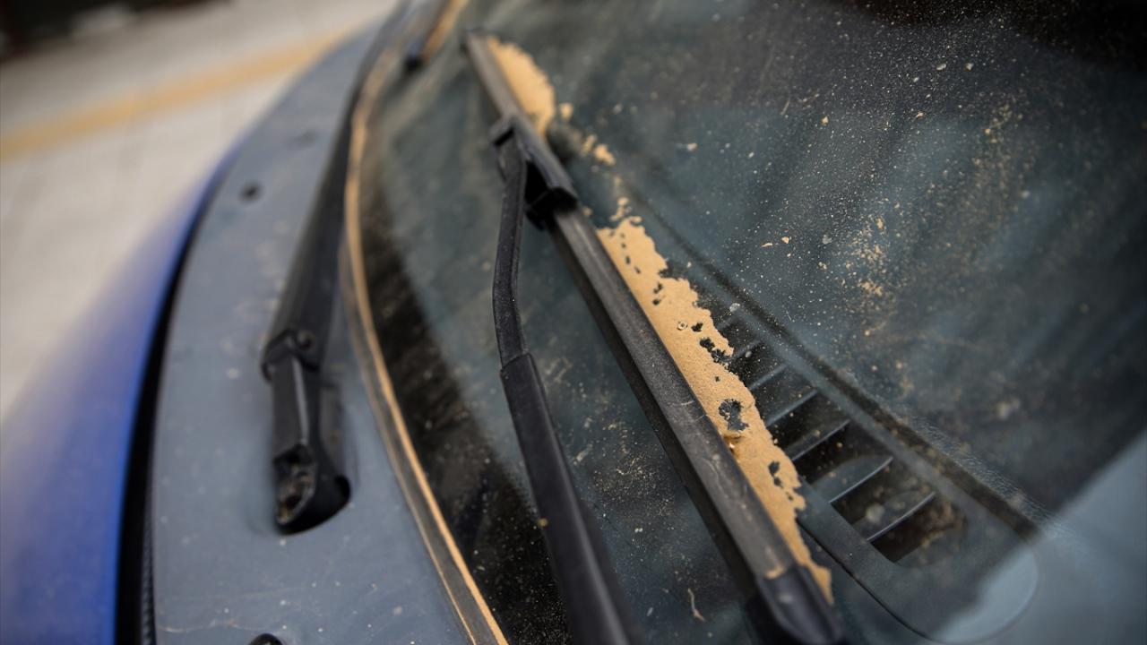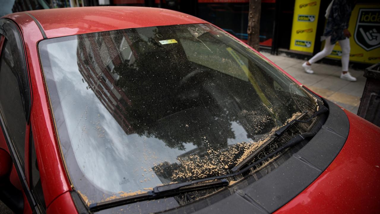 Toz taşınımı nedeniyle araçların üzerinde kum birikti.