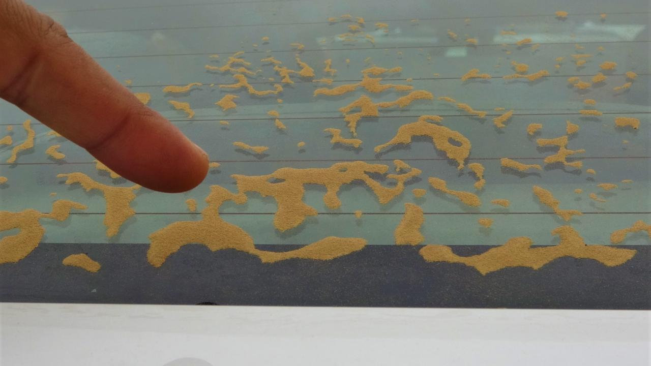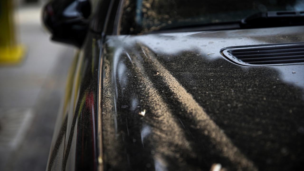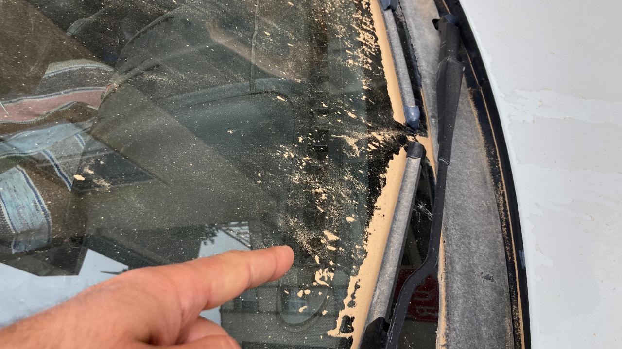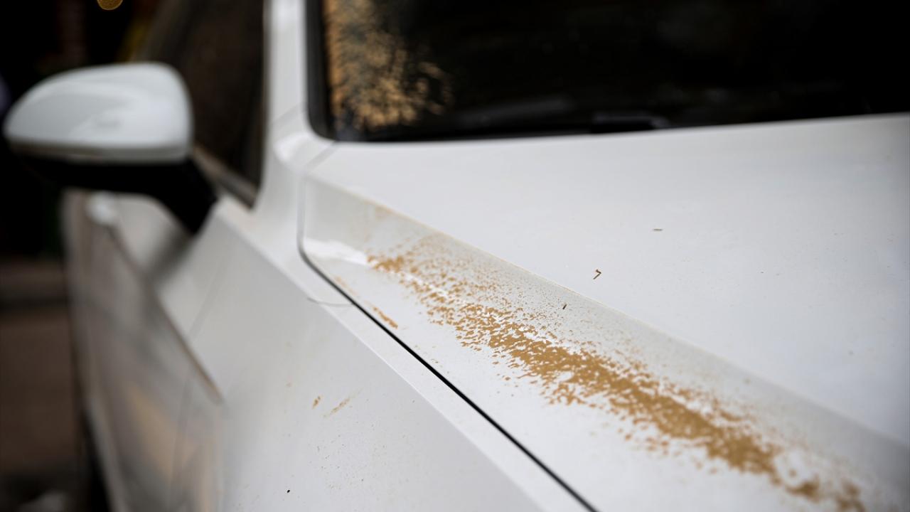 Toz taşınımı nedeniyle araçların üzerinde kum birikti.