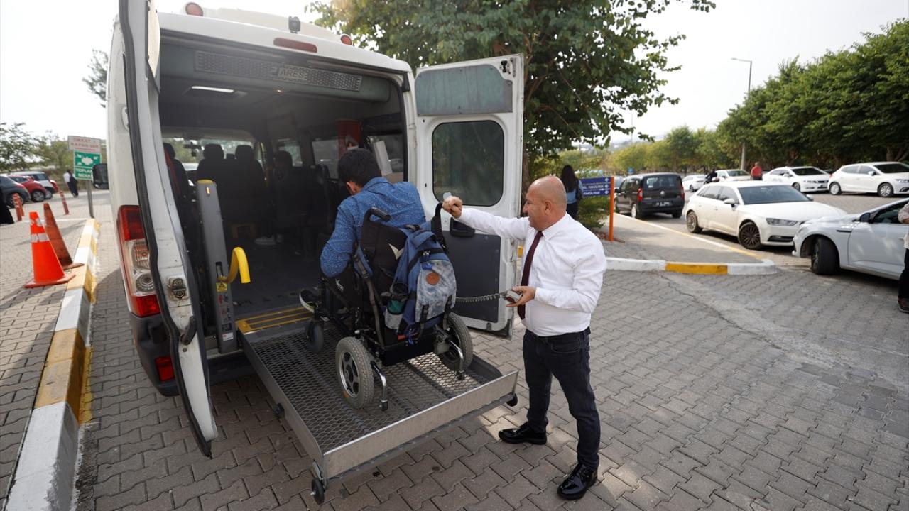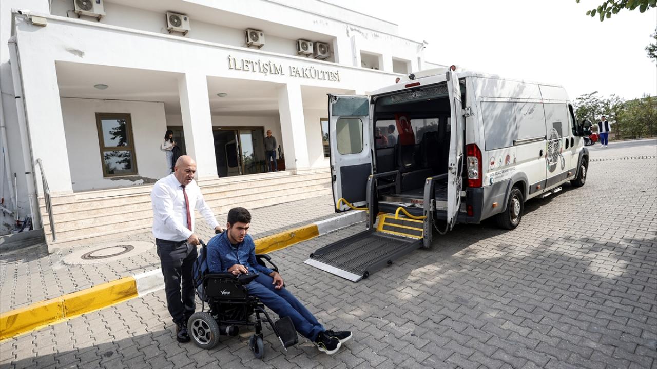 Engellilik durumu nedeniyle toplu taşıma kullanma imkanı olmayan özel gereksinimli öğrenciler, ders programlarına uygun şekilde üniversitenin servis aracıyla evlerinden alınarak eğitim gördüğü sınıfa kadar getiriliyor.