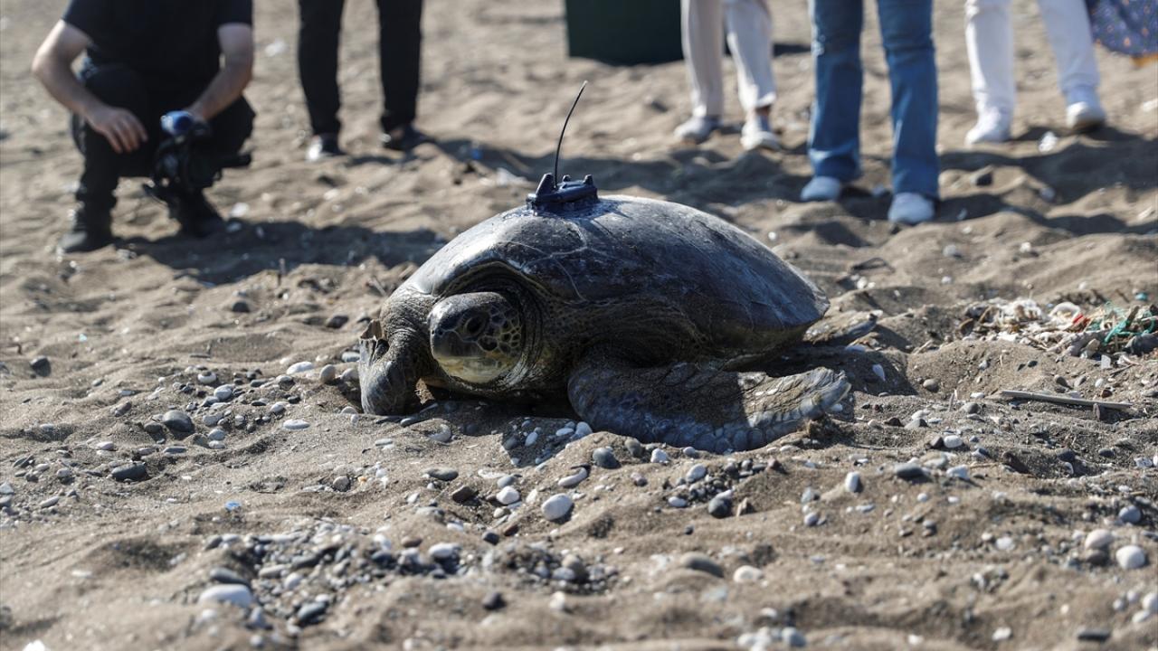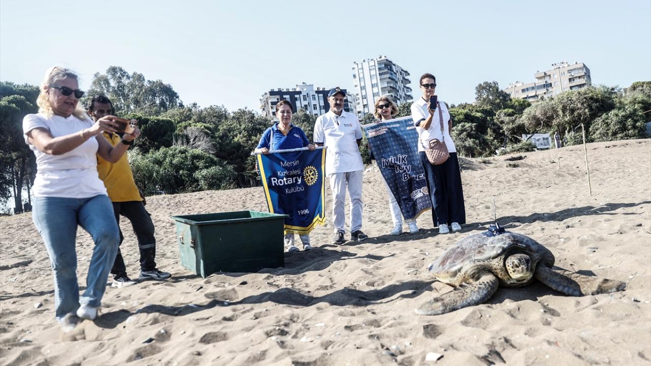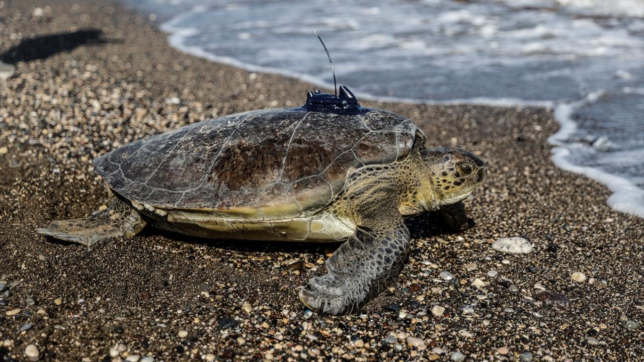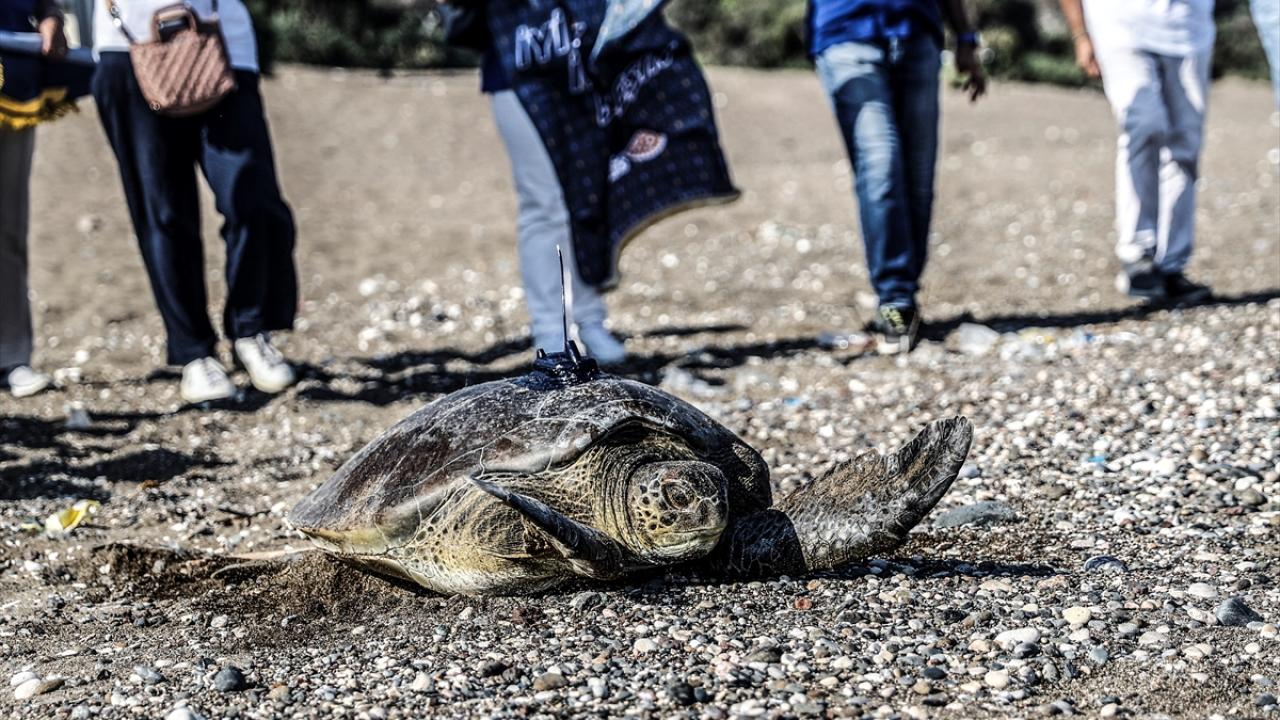 Mersin'de göç yolları ve kışlama alanlarının öğrenilmesi amacıyla başlatılan proje kapsamında uydu takip cihazı takılan "Alata" adlı yeşil deniz kaplumbağası denize bırakıldı.