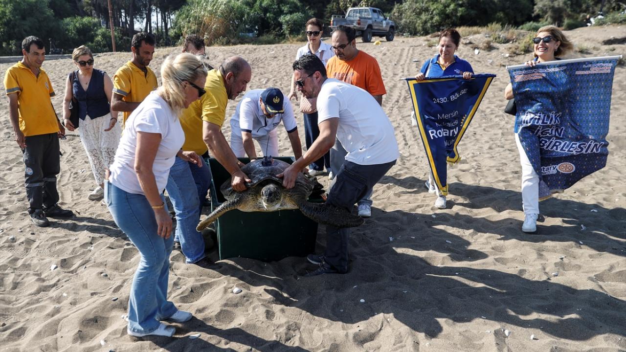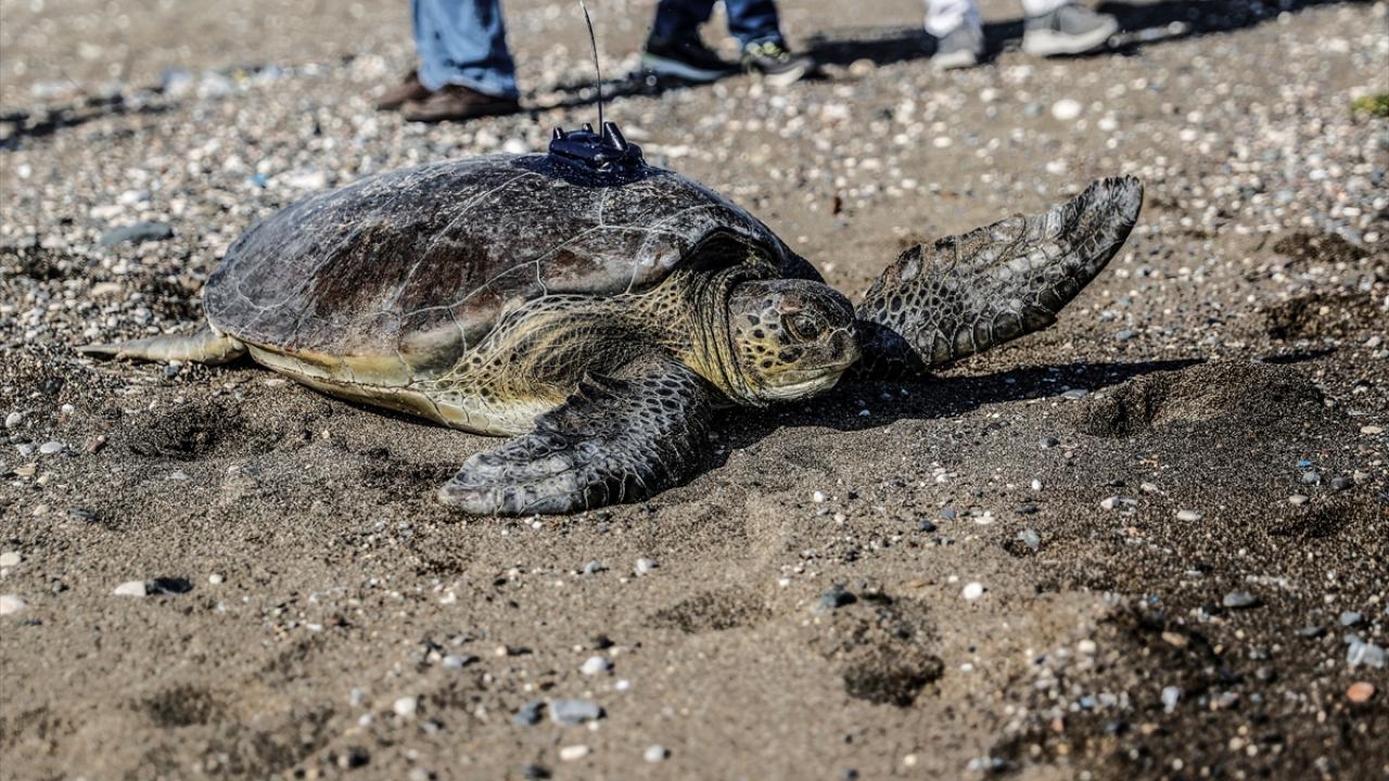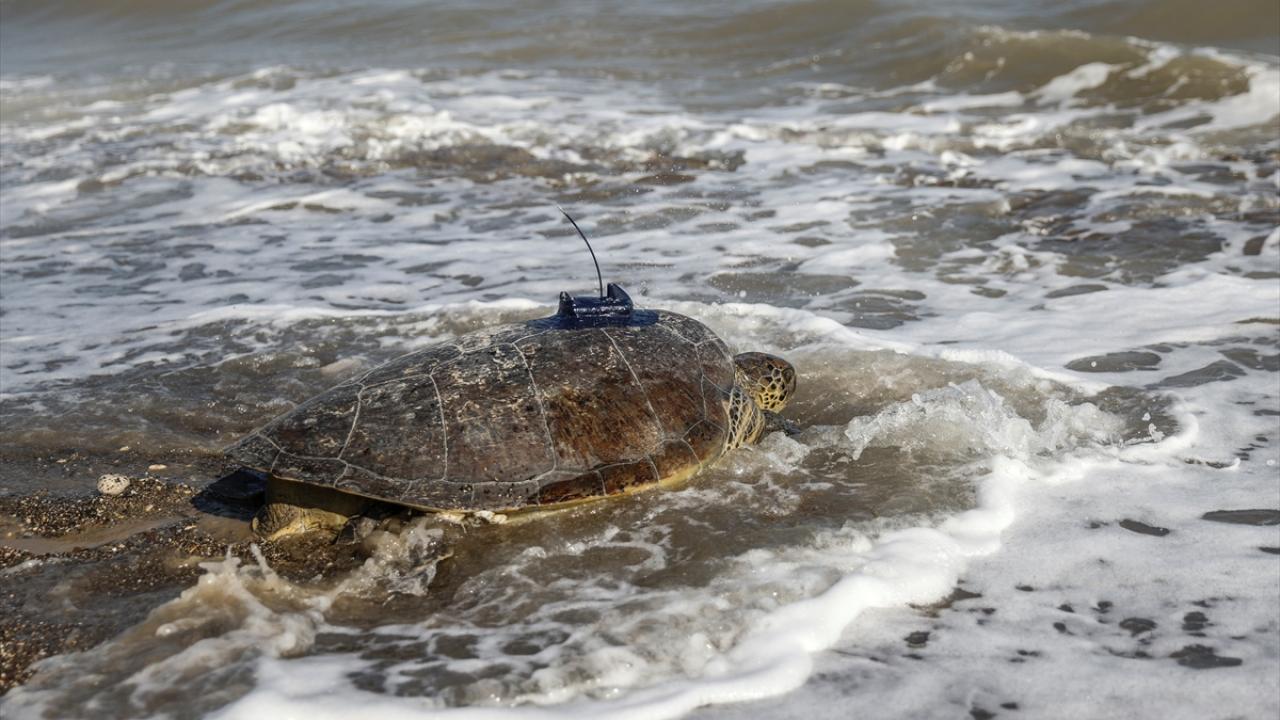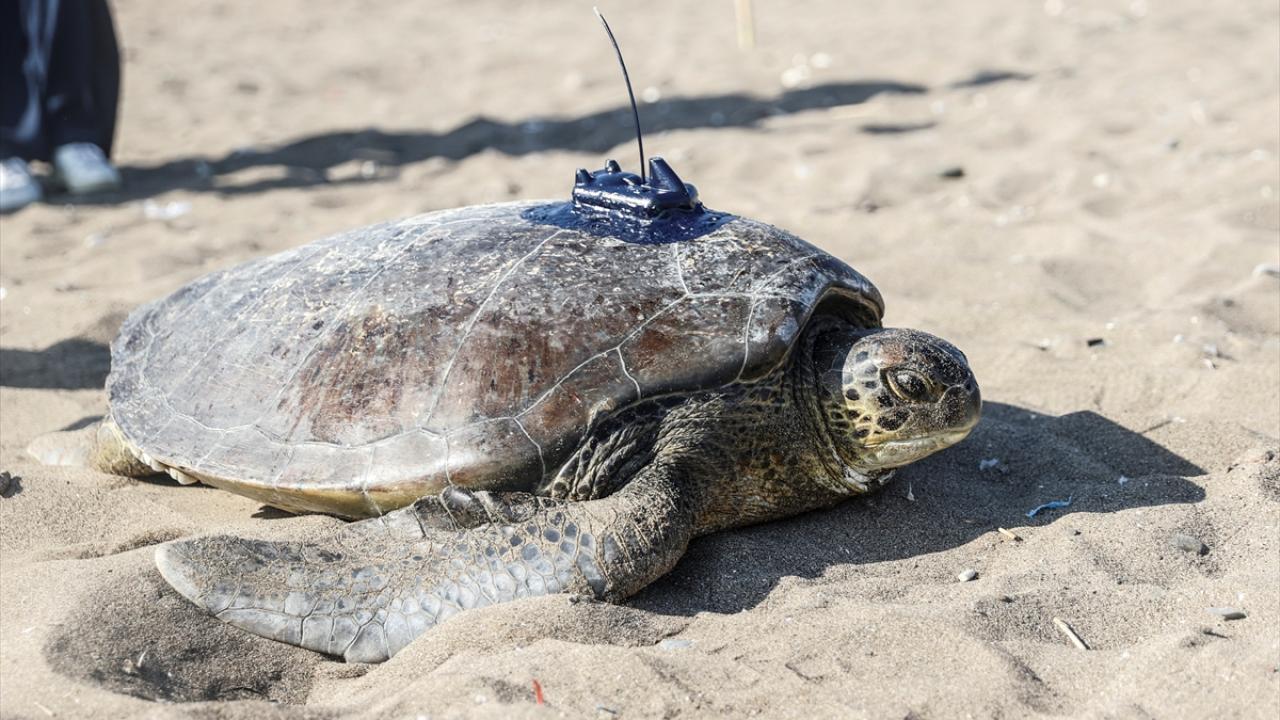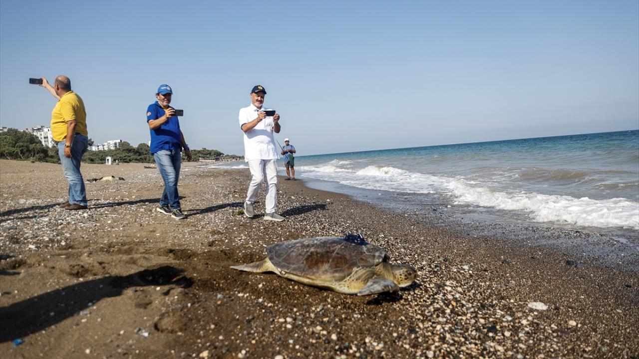 Mersin'de göç yolları ve kışlama alanlarının öğrenilmesi amacıyla başlatılan proje kapsamında uydu takip cihazı takılan "Alata" adlı yeşil deniz kaplumbağası denize bırakıldı.