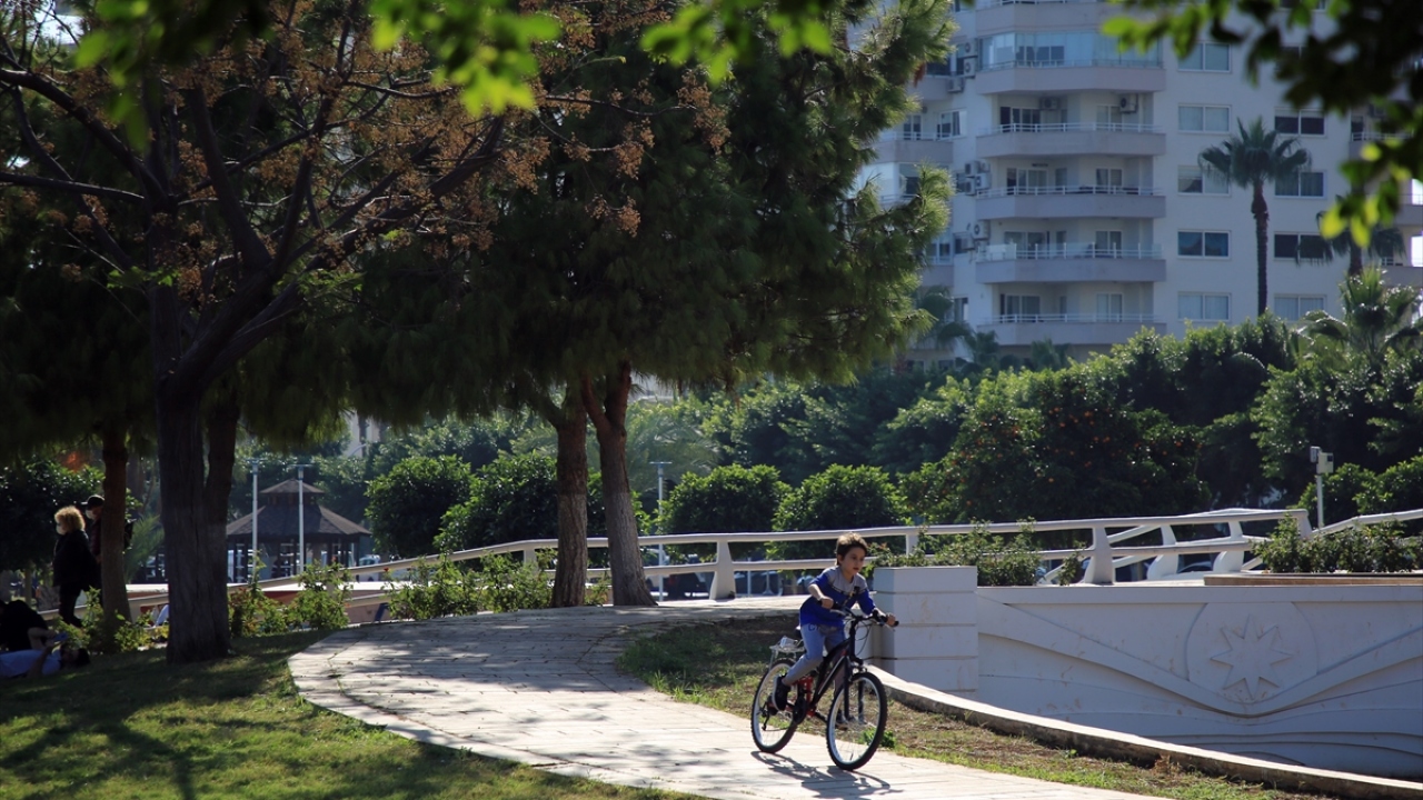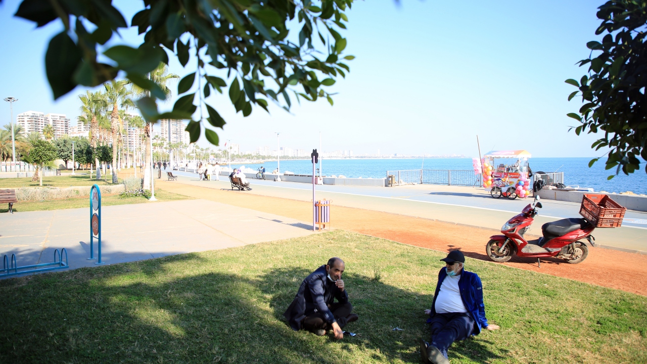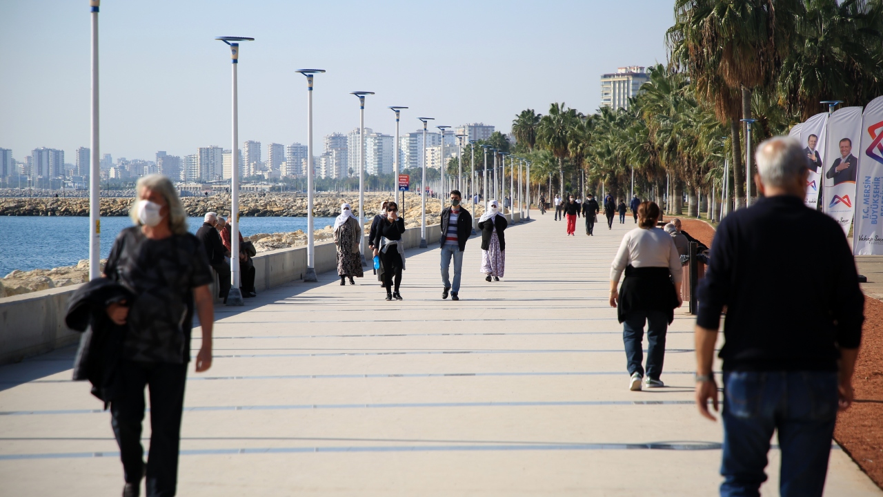 Mersin'de vatandaşlar güneşli havanın tadını çıkarıyor