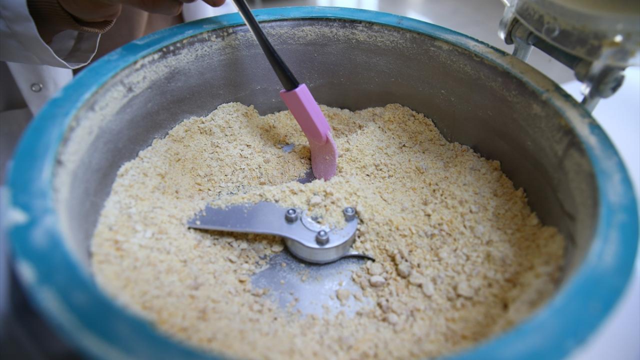 Tarsus Üniversitesi Mersin Tarsus Organize Sanayi Bölgesi Teknik Bilimler Meslek Yüksekokulu Gıda İşleme Bölümü Öğretim Üyesi Doç. Dr. Gülden Gökşen öncülüğündeki ekip, nohutları ince un haline getirdikten sonra su ve hayvansal olmayan diğer bileşenlerle karıştırdı.