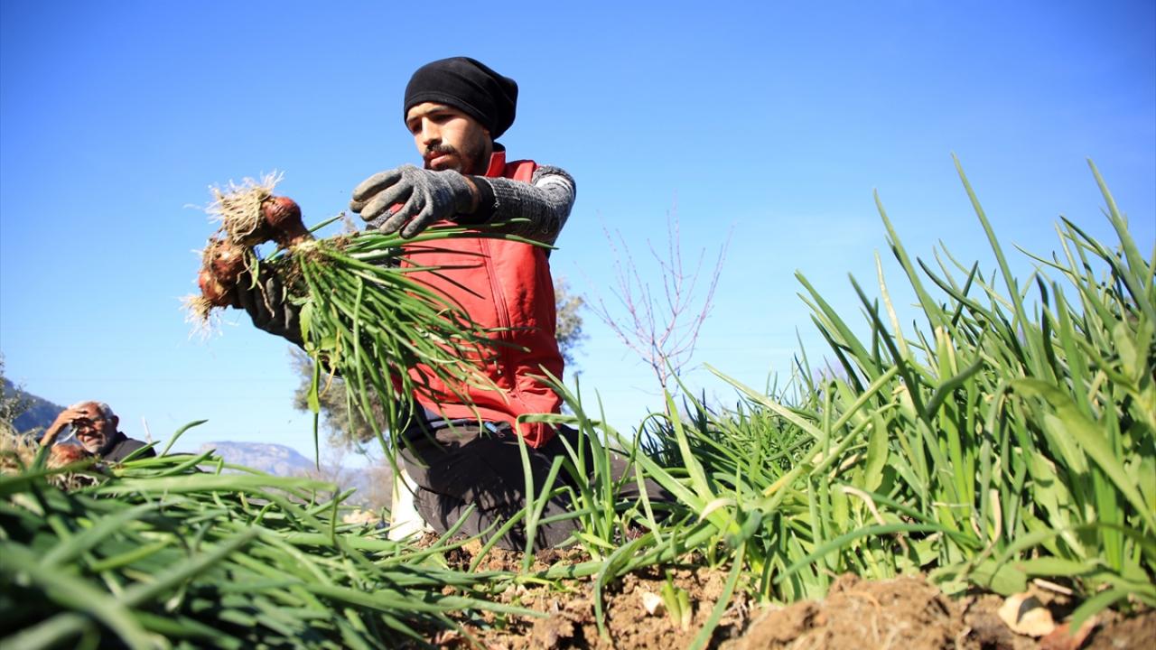 Üreticilerden Celal Boz da yeşil soğan hasadını ailesiyle birlikte yaptıklarını belirtti.