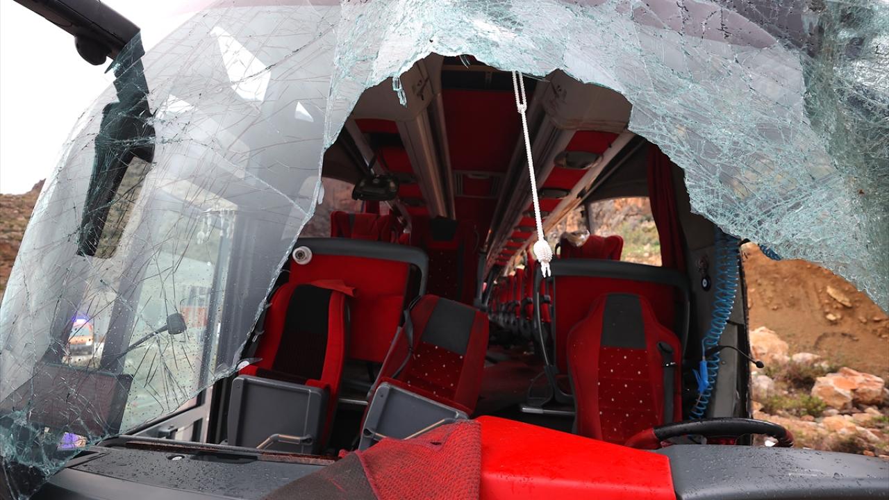 Marmaris`ten Mardin`e gitmek üzere yola çıkan Hüseyin Tayşun`un (43) kullandığı Dilmenler Mardin firmasına ait 47 NA 767 plakalı otobüs, D-400 kara yolunun Yenikaş Mahallesi Sarıyar Tüneli çıkışında bariyere çarpıp şarampole devrildi.