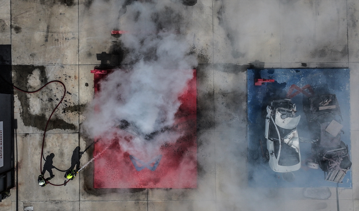 Merve Beyaztepe de 2 yıldır itfaiye eri olarak görev yaptığını belirterek, tatbikatlarla kendilerini hem teknik hem psikolojik olarak göreve hazır hale getirdiklerini kaydetti.