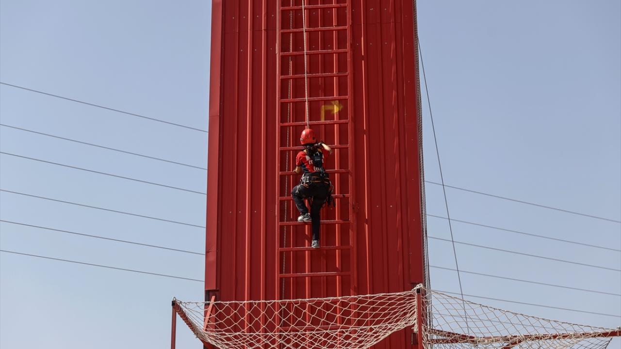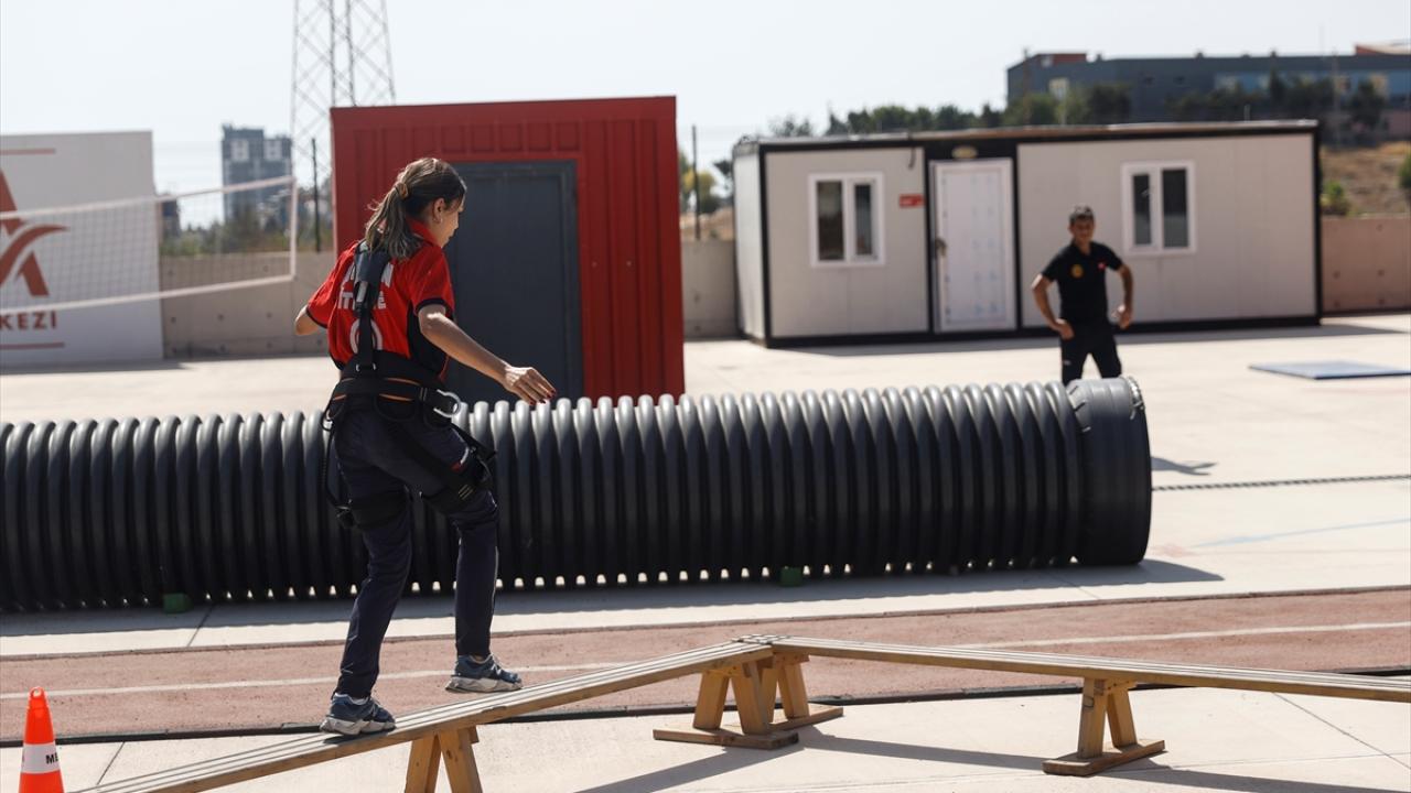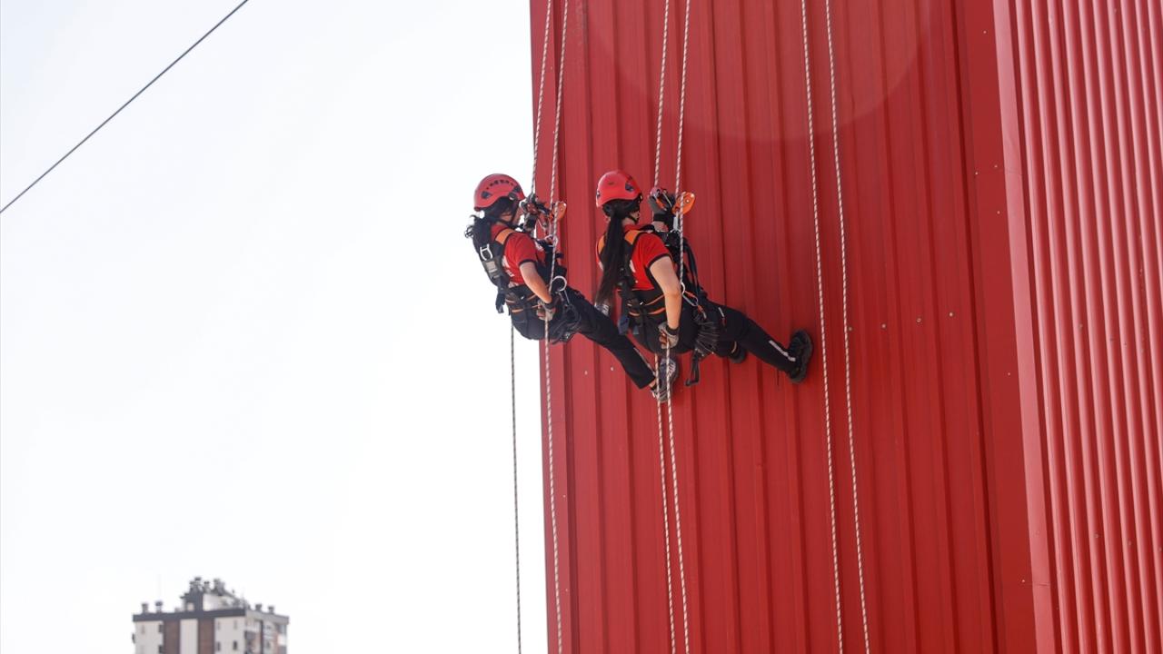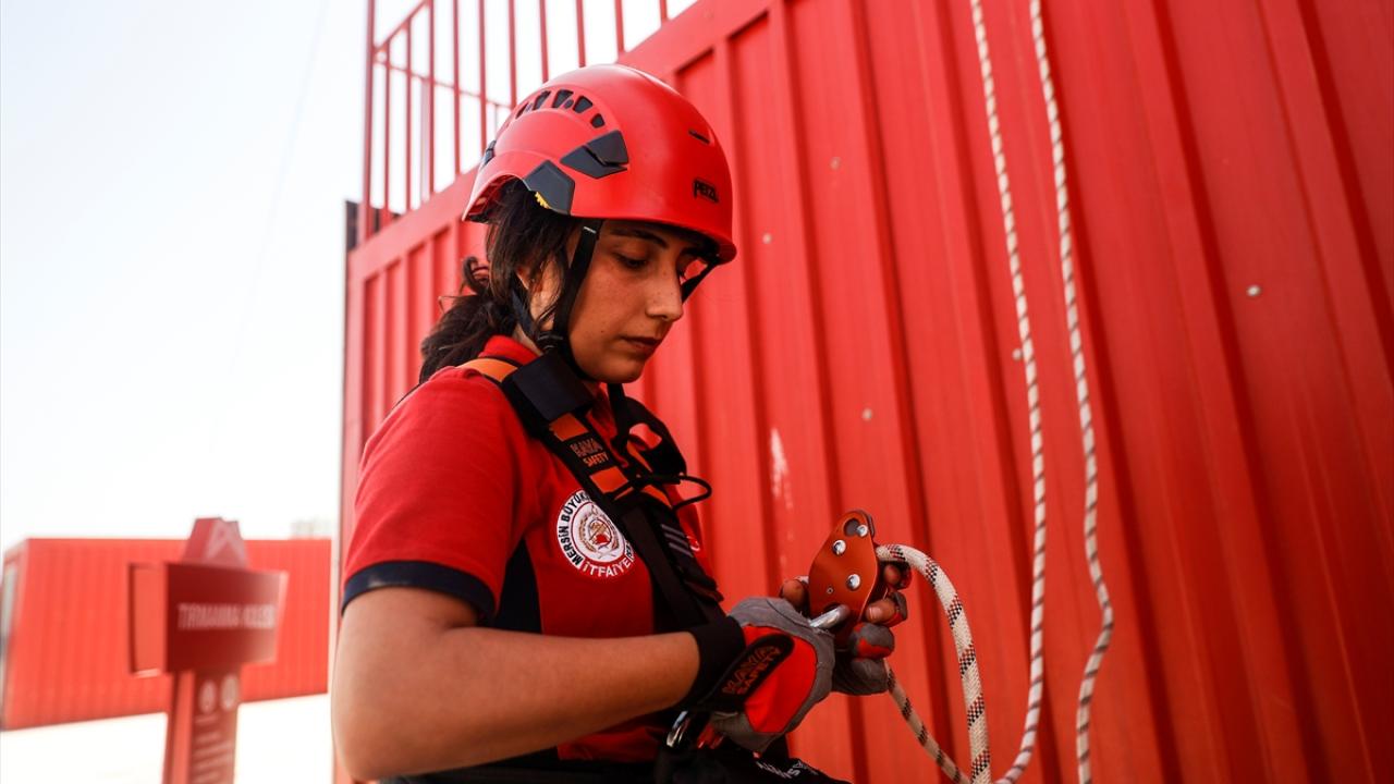 Burada zorlu parkurlarda ter döken kadın itfaiyeciler, saha müdahalelerine hazır hale gelerek operasyonlarda önemli görevler üstleniyor.