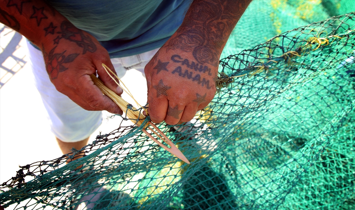 Sabırsızlıkla sezona merhaba demek isteyen balıkçılar, teknelerinin bakımlarını yaparak ağları da tamir etti.