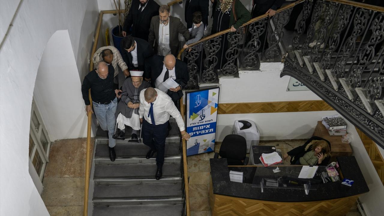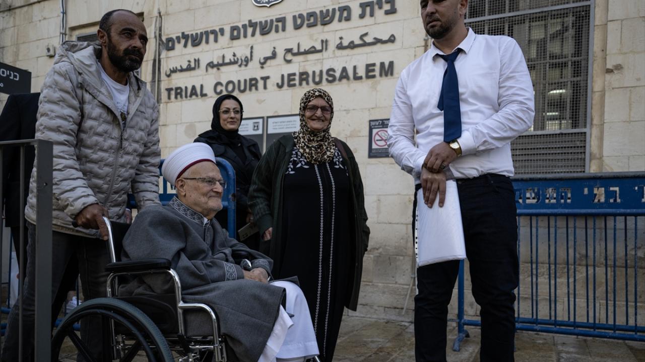 Mescid-i Aksa İmam Hatibi ve Kudüs Yüksek İslam Heyeti Başkanı Şeyh İkrime Sabri, "Teröre teşvik" ve "kışkırtma" iddialarıyla yargılandığı davanın duruşmasına katılmak için, Doğu Kudüs'te bulunan ve İsrail'e bağlı Kudüs Sulh Mahkemesi'ne geldi.