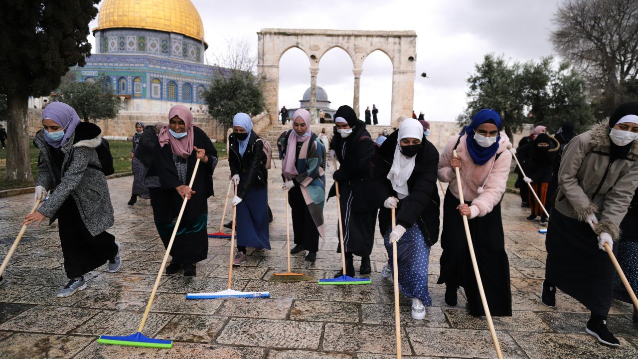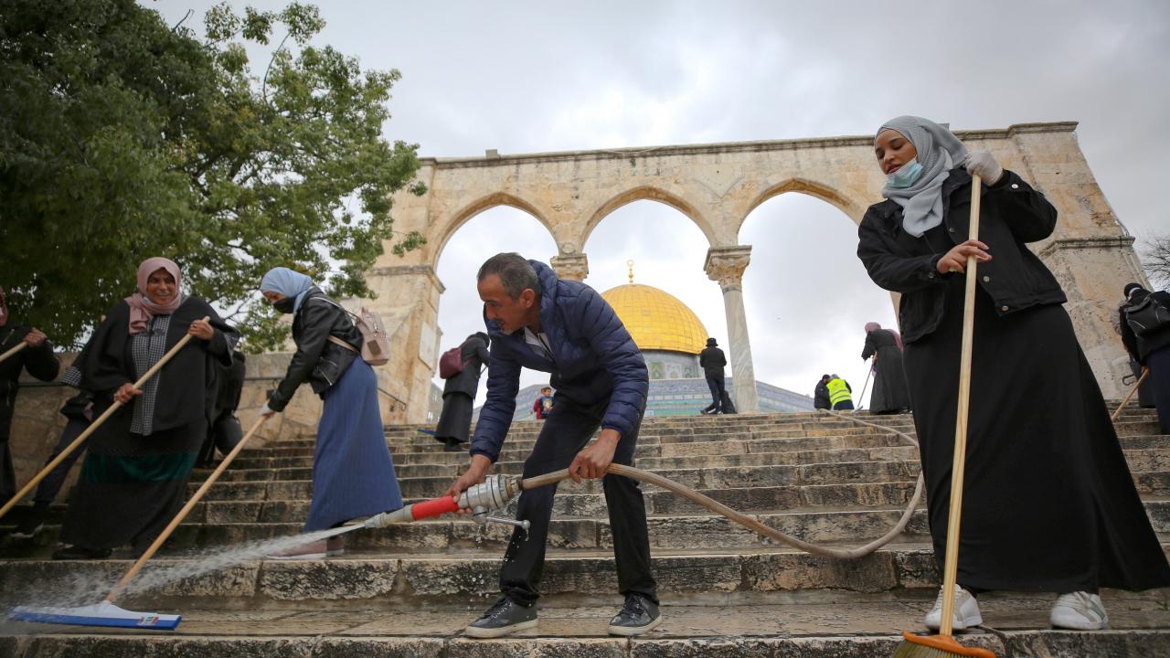 Kudüs'te Müslümanların ilk kıblesi olarak kabul edilen Mescid-i Aksa'da yüzlerce Filistinli, ramazan ayına sayılı günler kala temizlik çalışması yaptı.