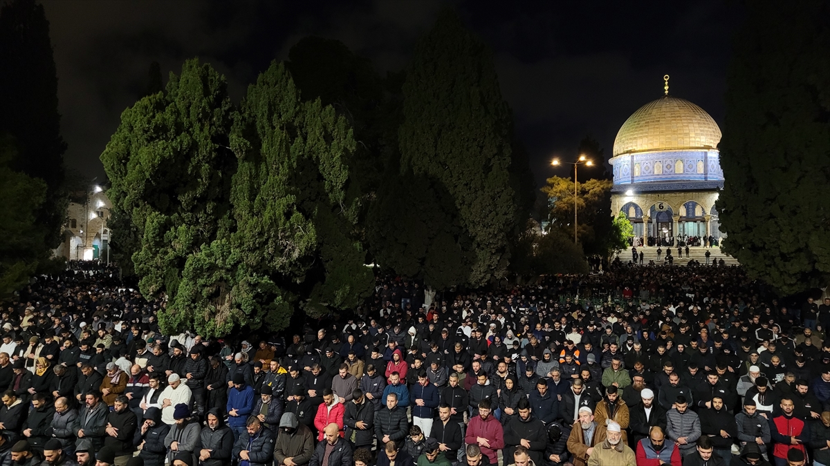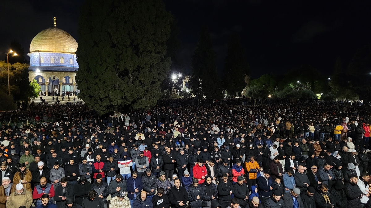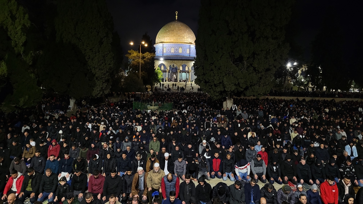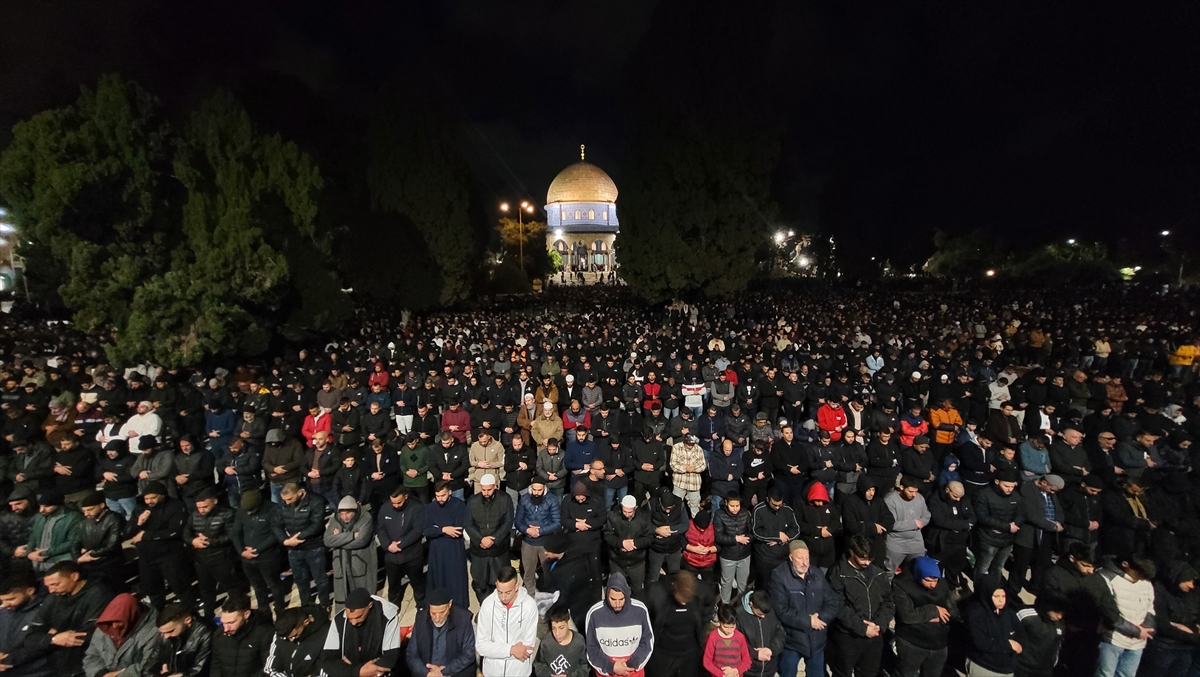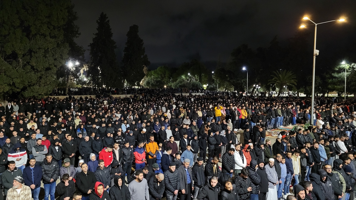 İsrail işgali altındaki Doğu Kudüs'teki Mescid-i Aksa'da 90 bin kişi ramazan ayının 6. teravih namazını eda etti. İsrail’in 7 Ekim’de işgal altındaki Doğu Kudüs’teki Mescid-i Aksa’ya yönelik kısıtlamalarının ardından en yüksek sayıdaki cemaat rakamına ulaşıldı.