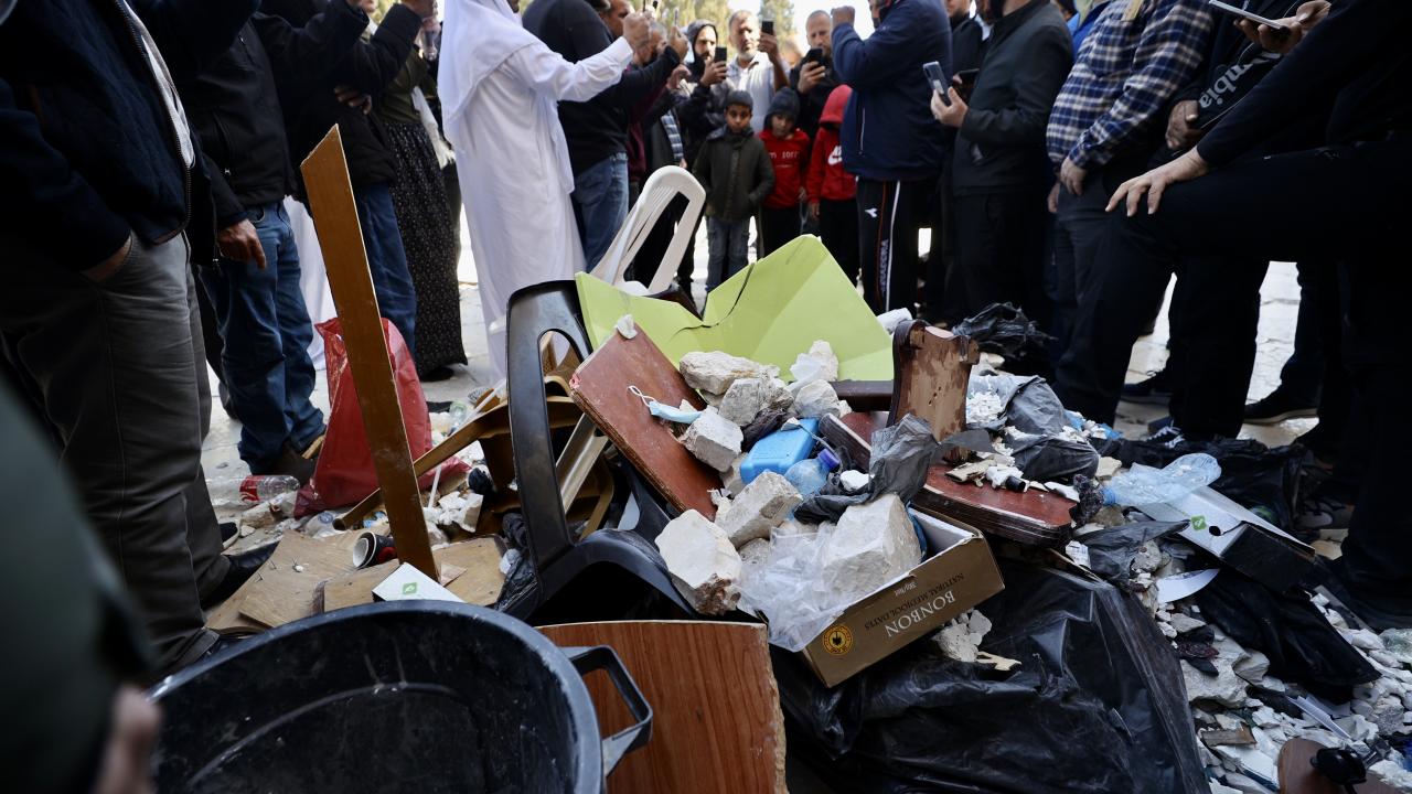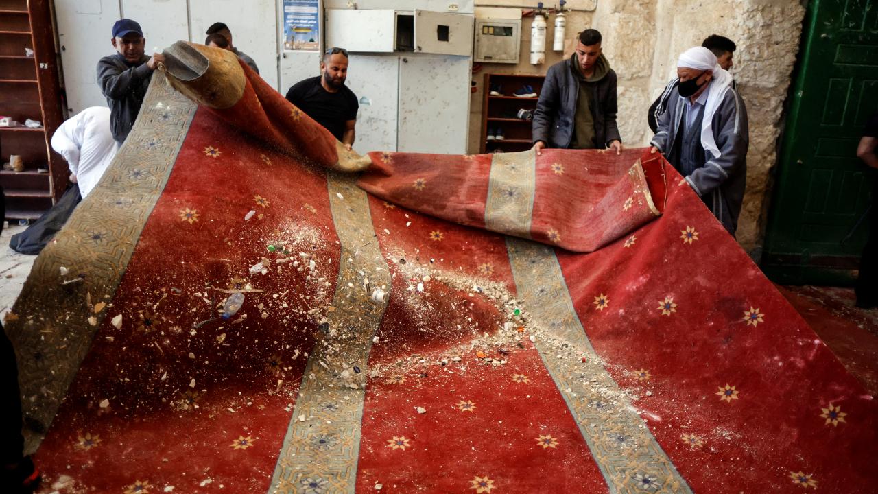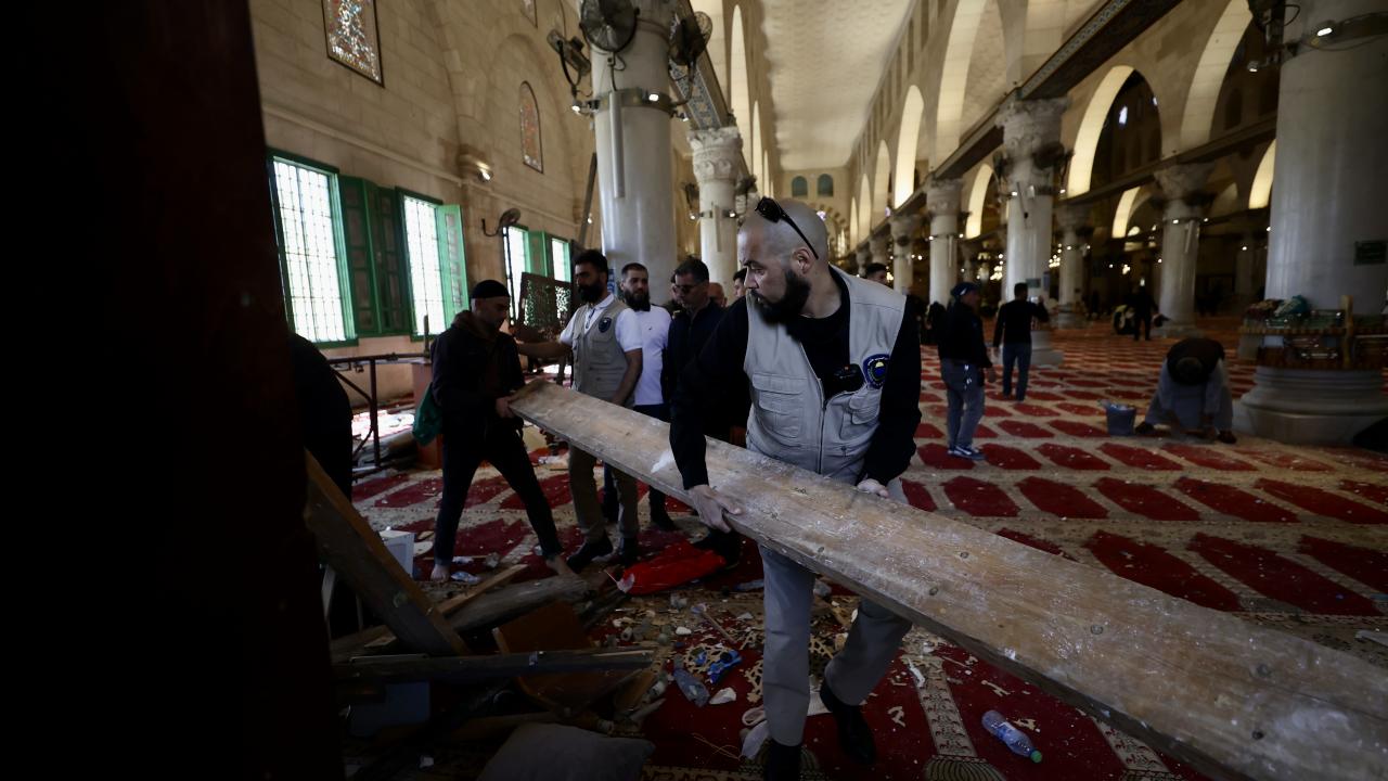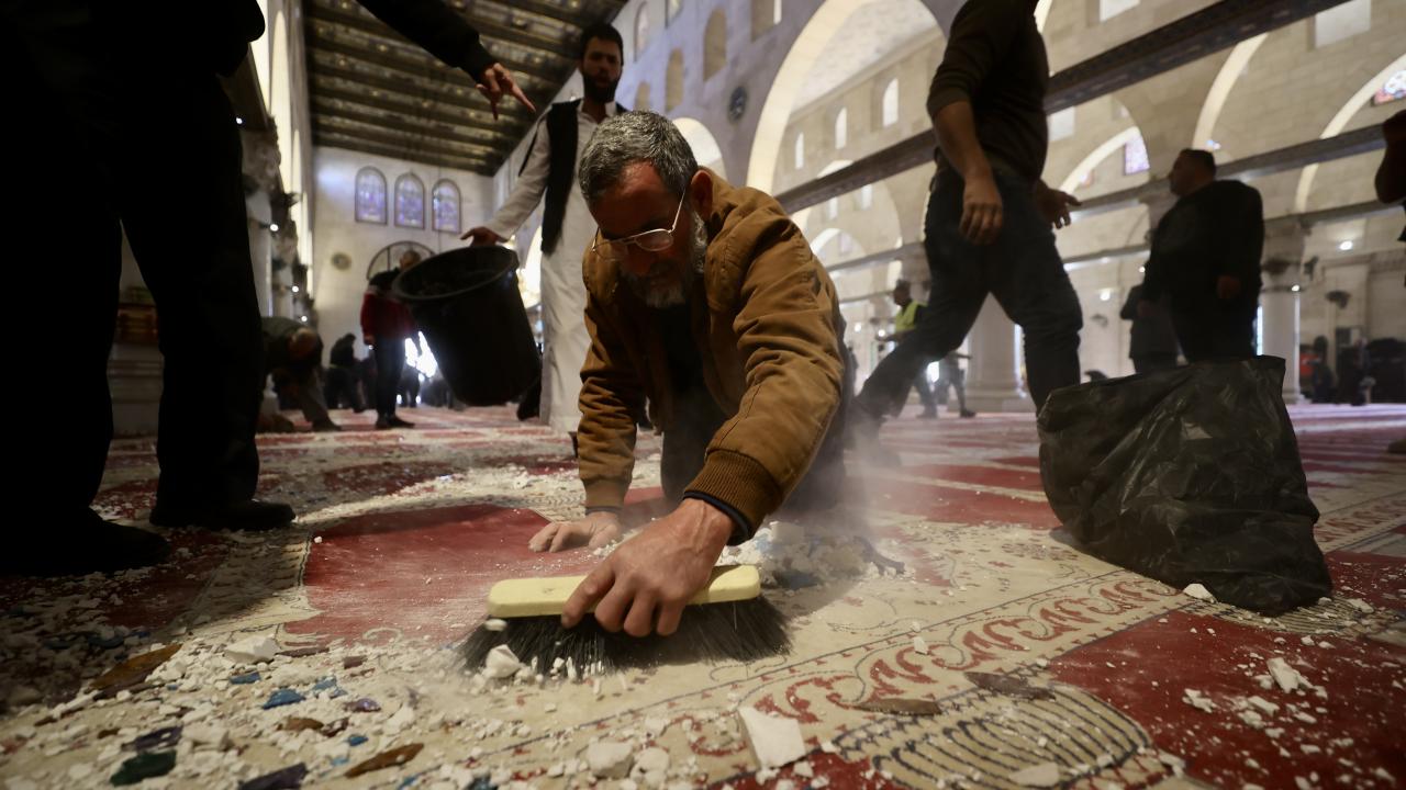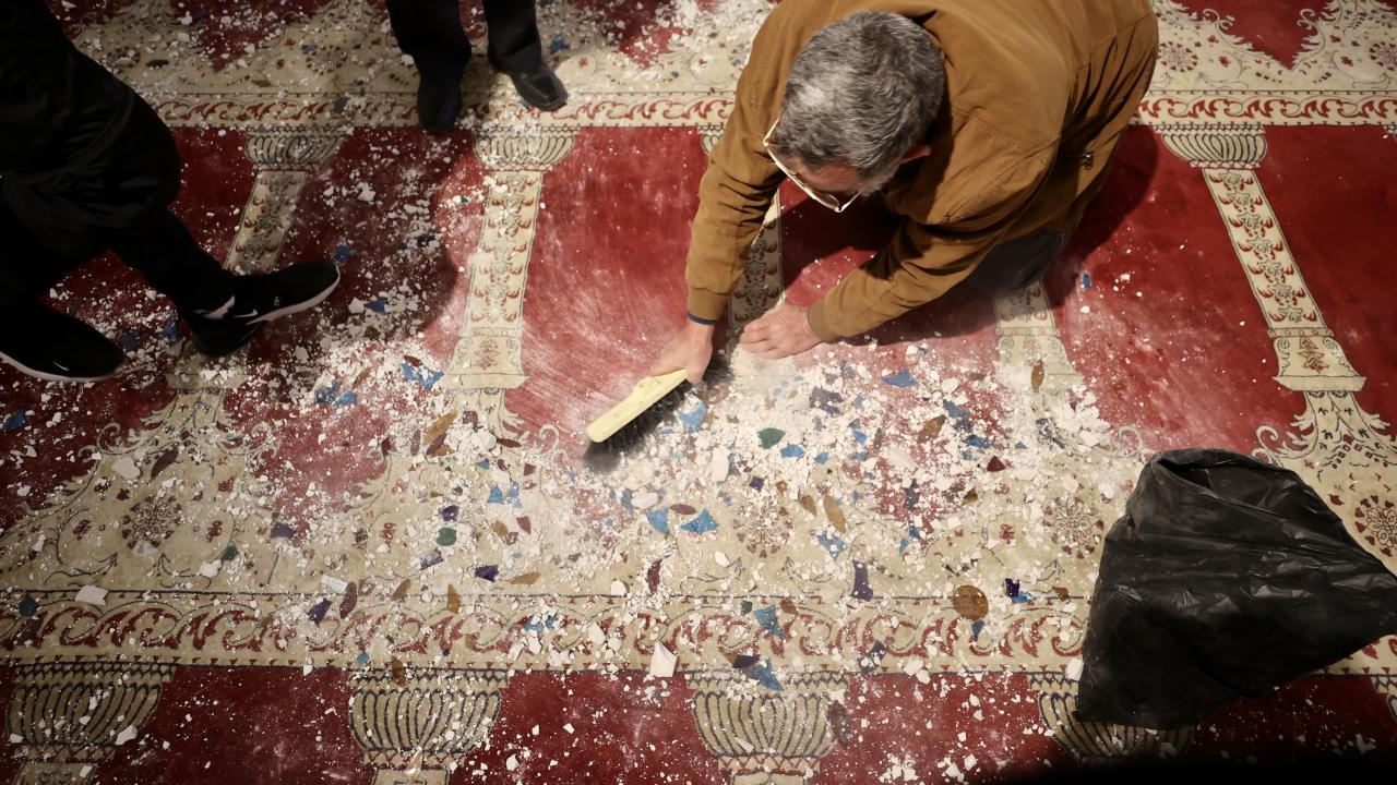 Filistinliler, yaşanan olayların ardından camide temizleme çalışması başlattılar.