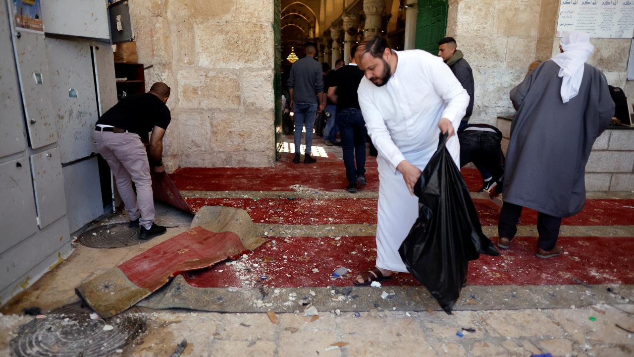 Mescid-i Aksa'da camide temizleme çalışması başladı
