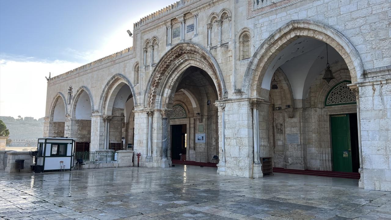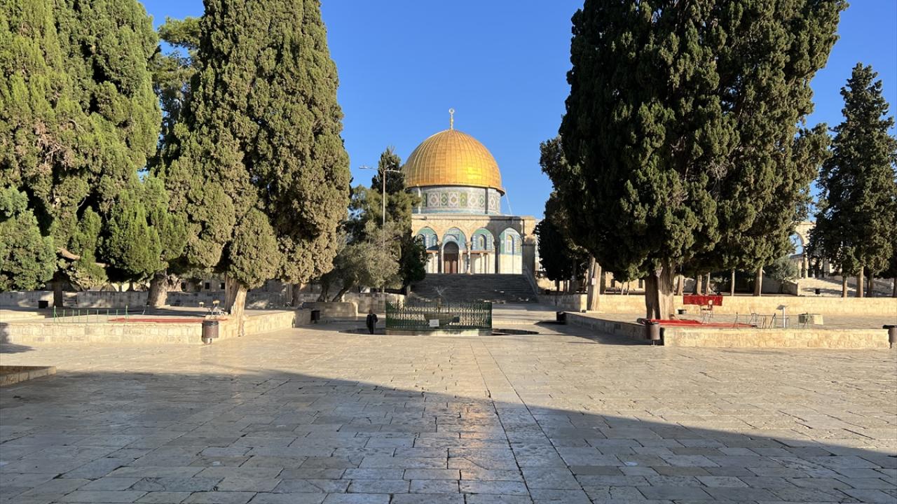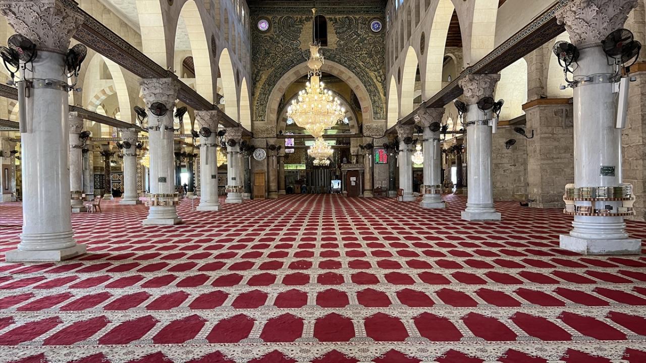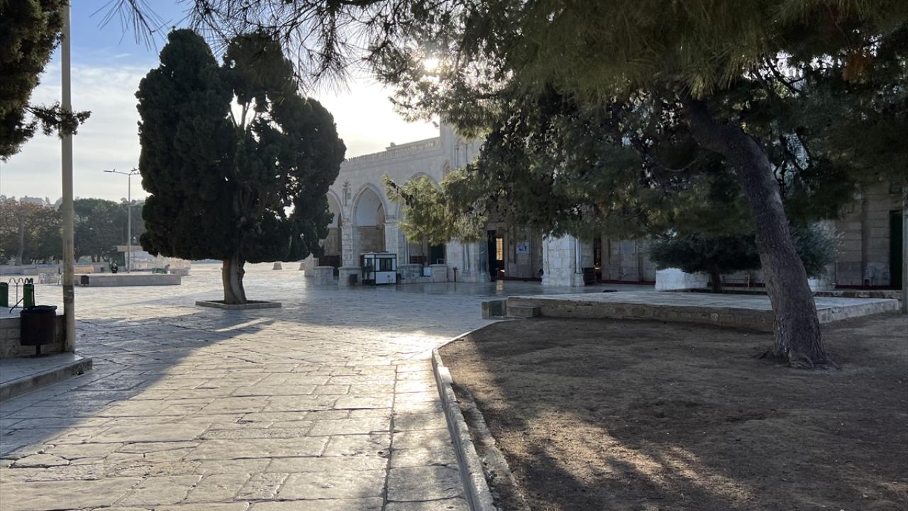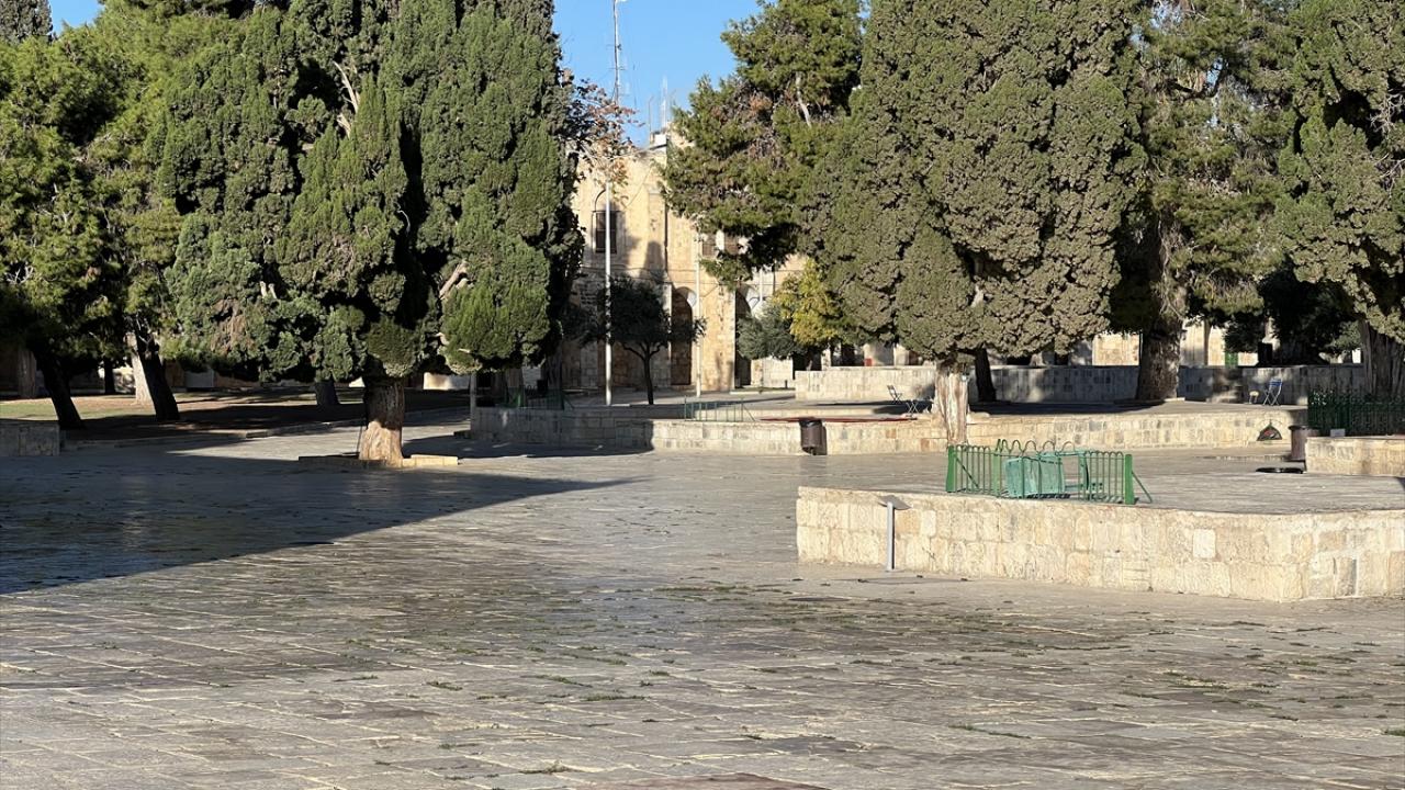 İsrail kısıtlamaları nedeniyle Mescid-i Aksa haremi içerisi ve avlusu cuma namazı öncesi boş olduğu görüldü.