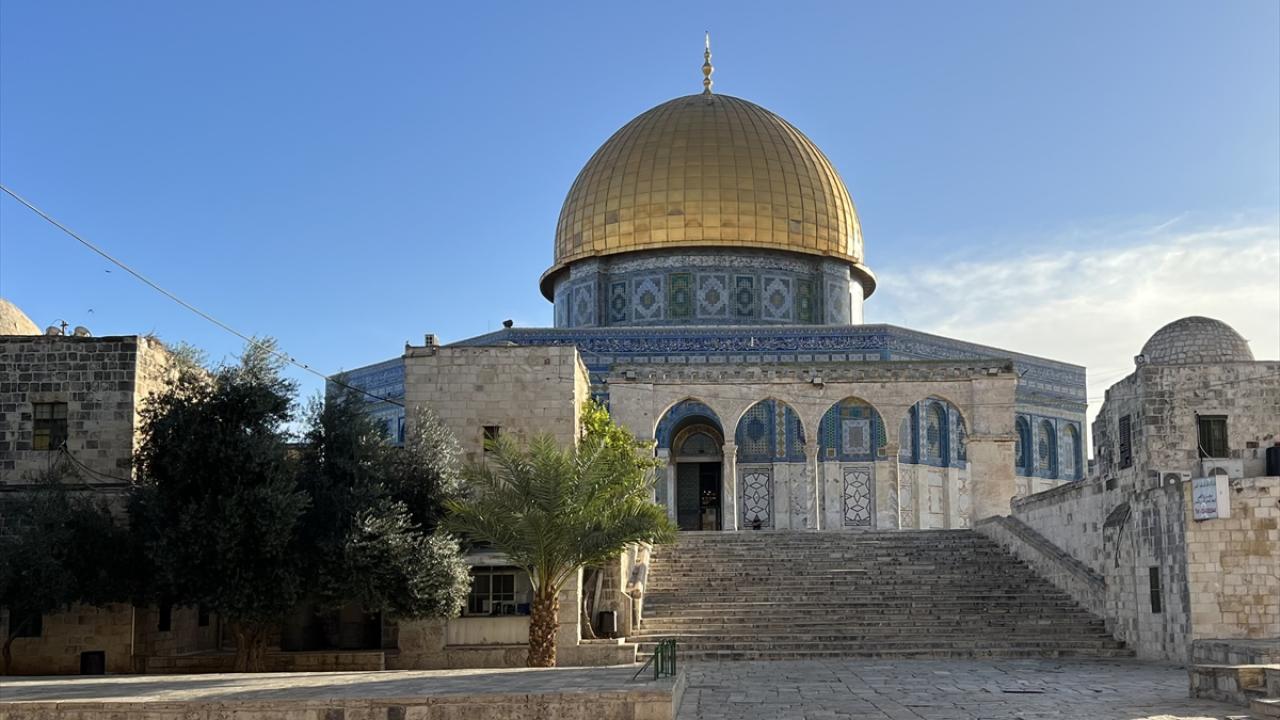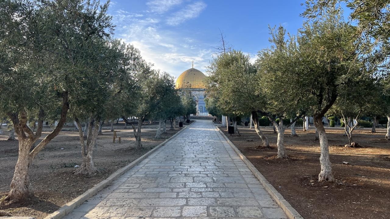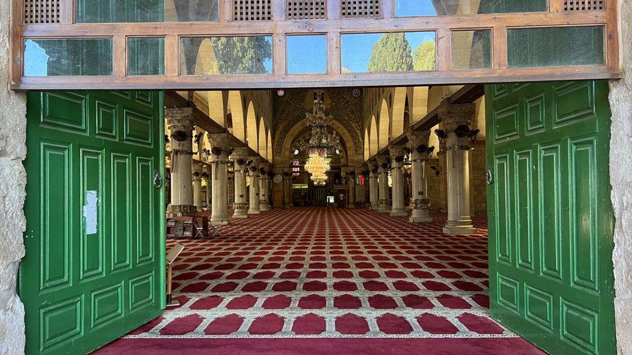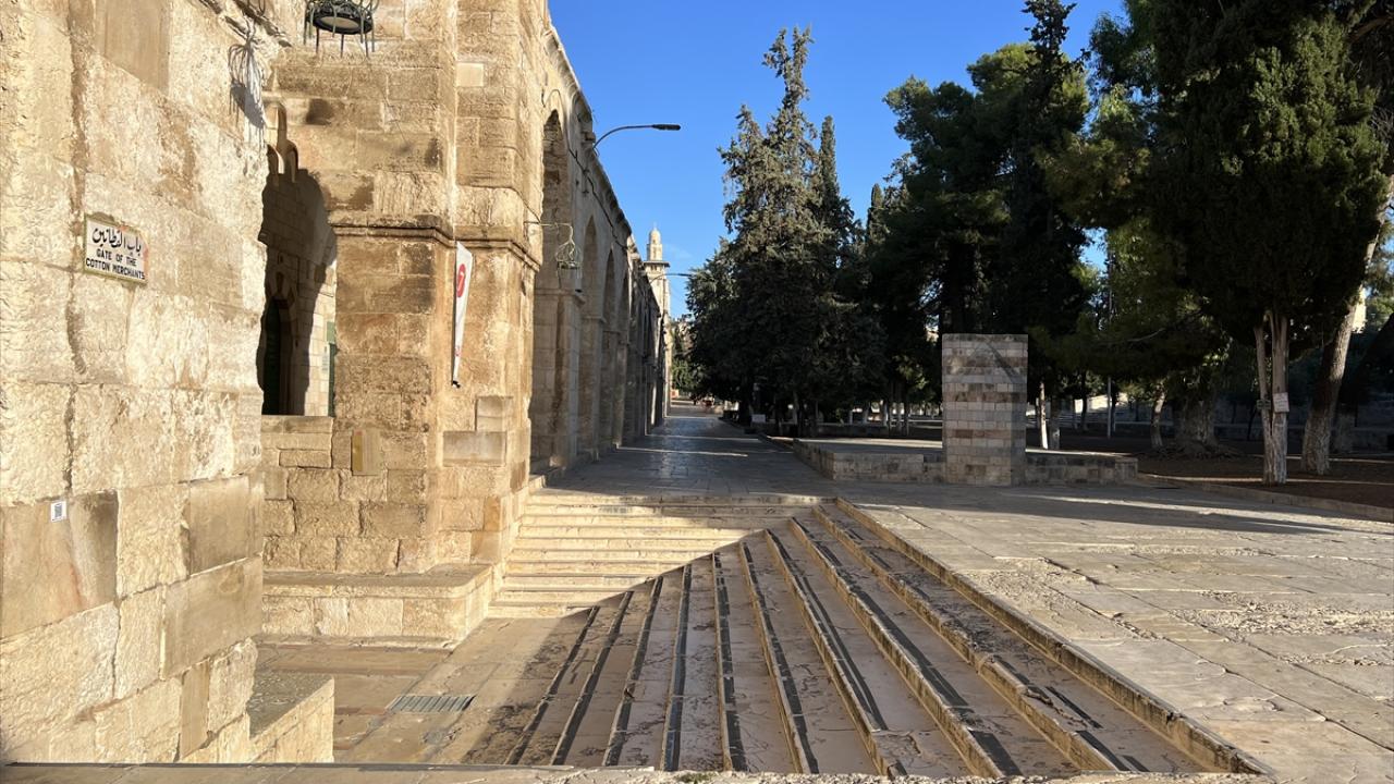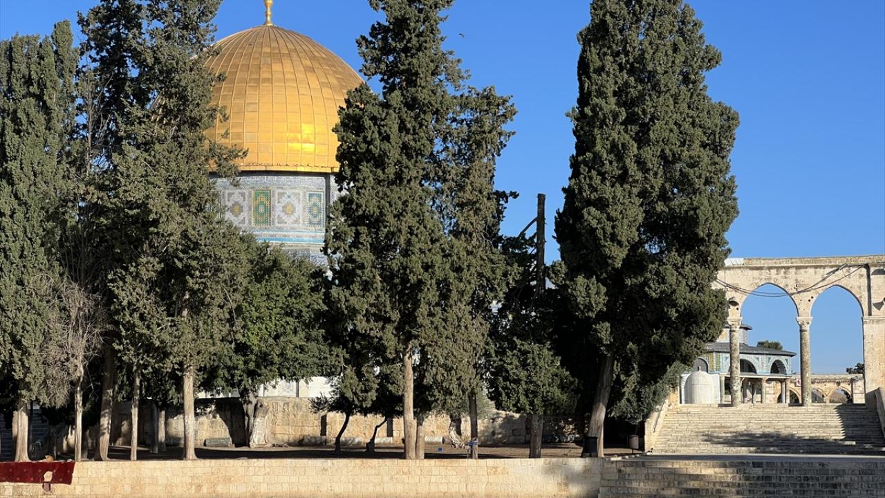 İsrail kısıtlamaları nedeniyle Mescid-i Aksa haremi içerisi ve avlusu cuma namazı öncesi boş olduğu görüldü.